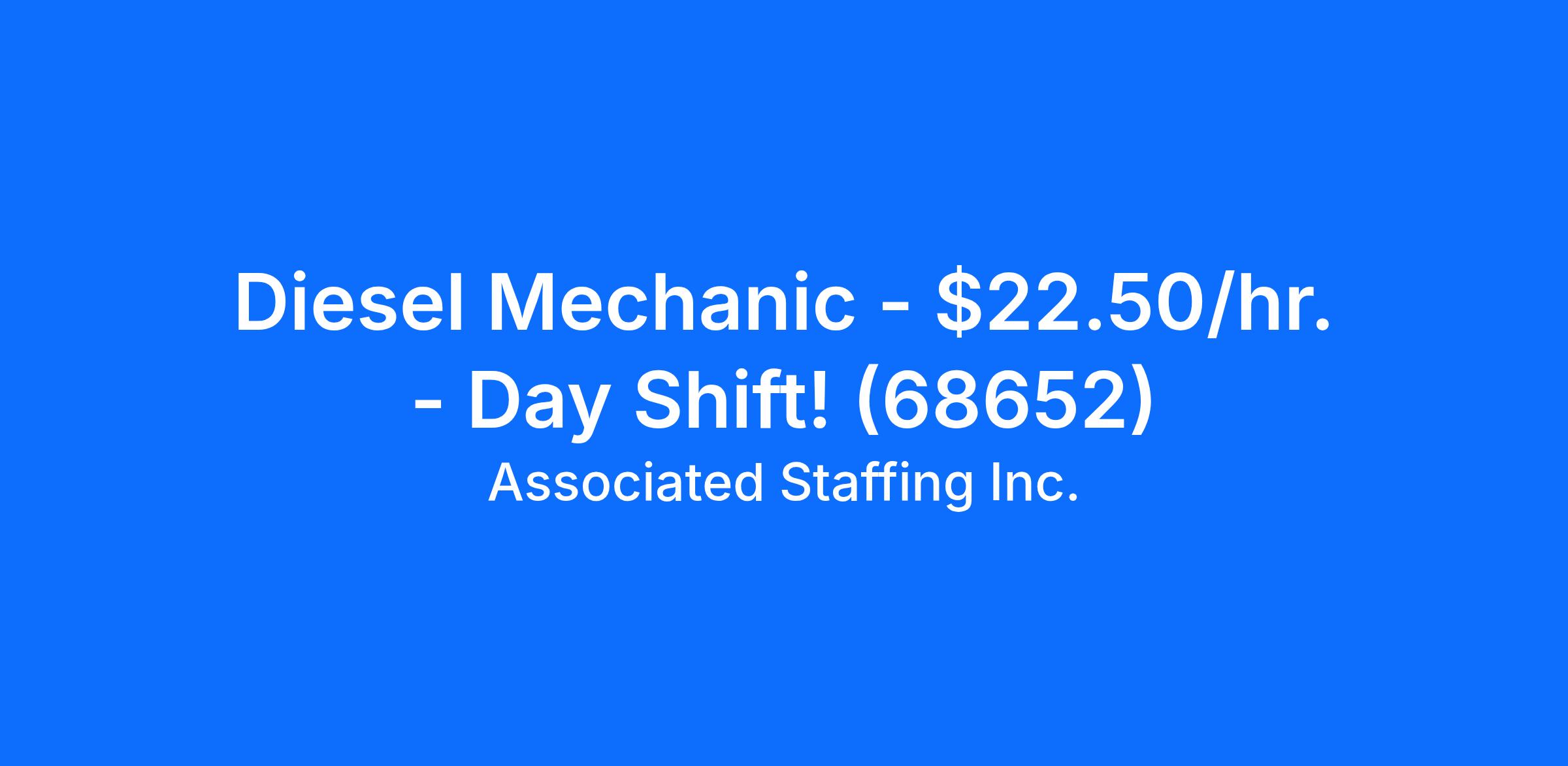 Diesel Mechanic – 1st Shift | $22.50/hour | Albion, NE
