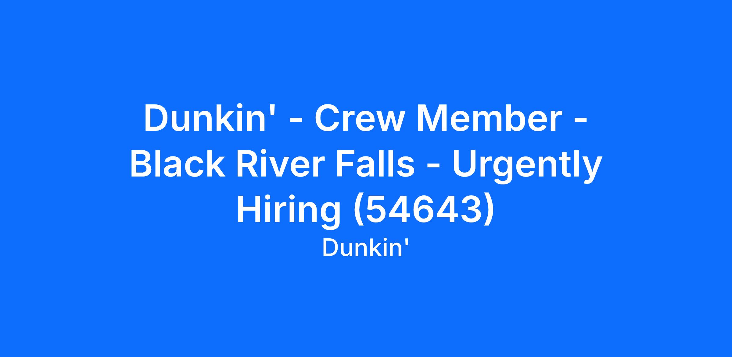 Dunkin' - Crew Member - Black River Falls - Urgently Hiring (54643)