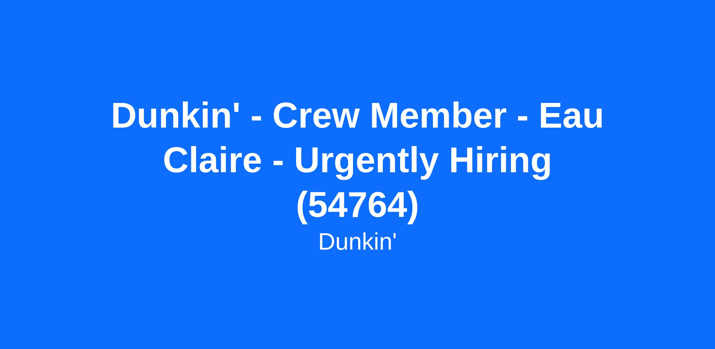 Dunkin' - Crew Member - Eau Claire - Urgently Hiring (54764)