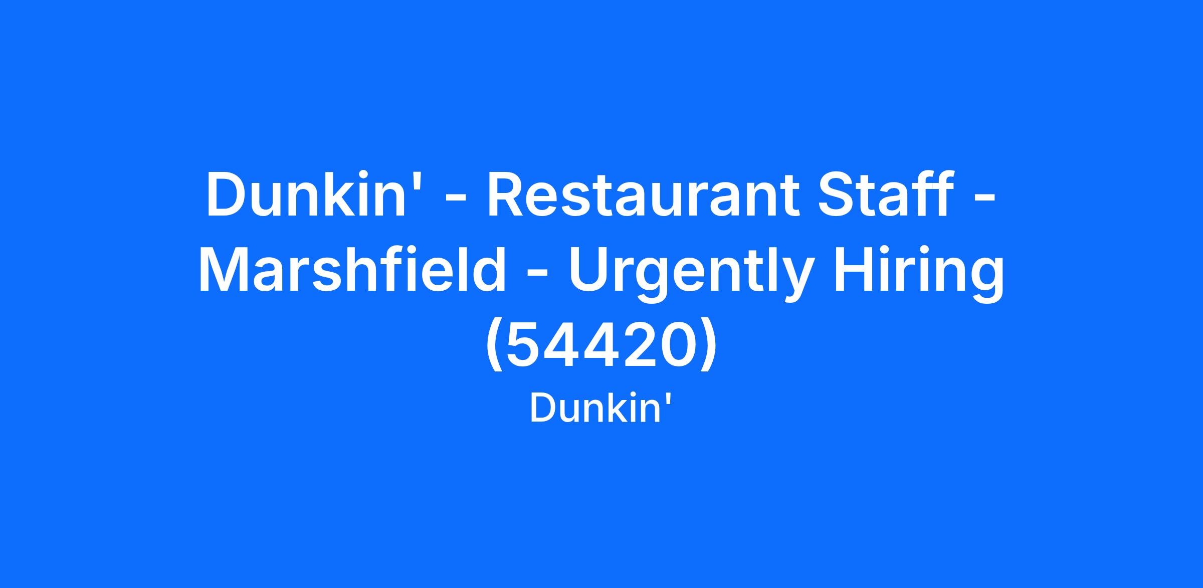 Dunkin' - Restaurant Staff - Marshfield - Urgently Hiring (54420)