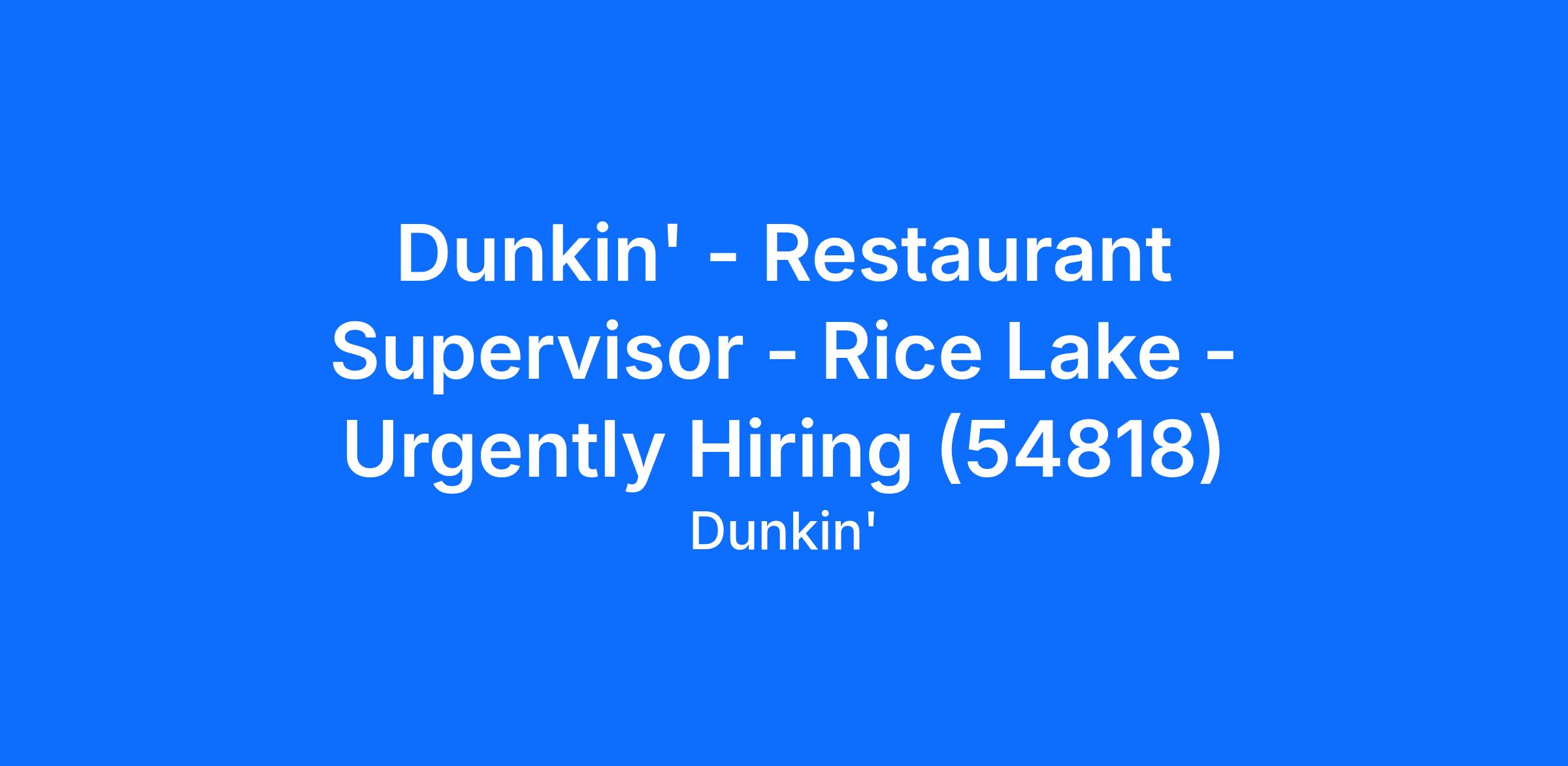 Dunkin' - Restaurant Supervisor - Rice Lake - Urgently Hiring (54818)