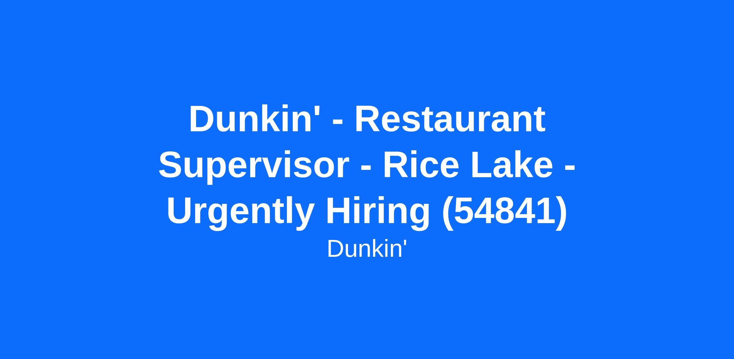 Dunkin' - Restaurant Supervisor - Rice Lake - Urgently Hiring (54841)