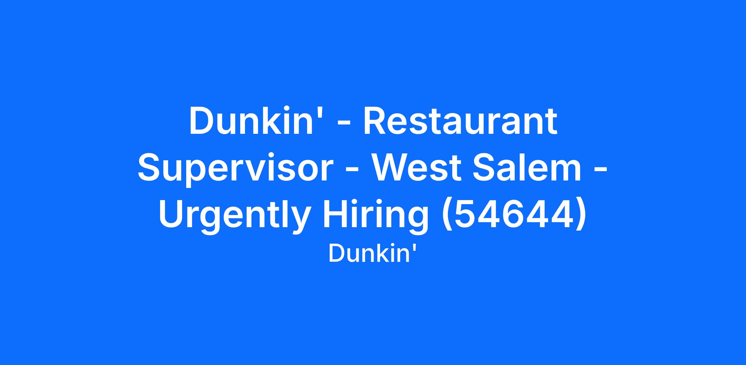 Dunkin' - Restaurant Supervisor - West Salem - Urgently Hiring (54644)