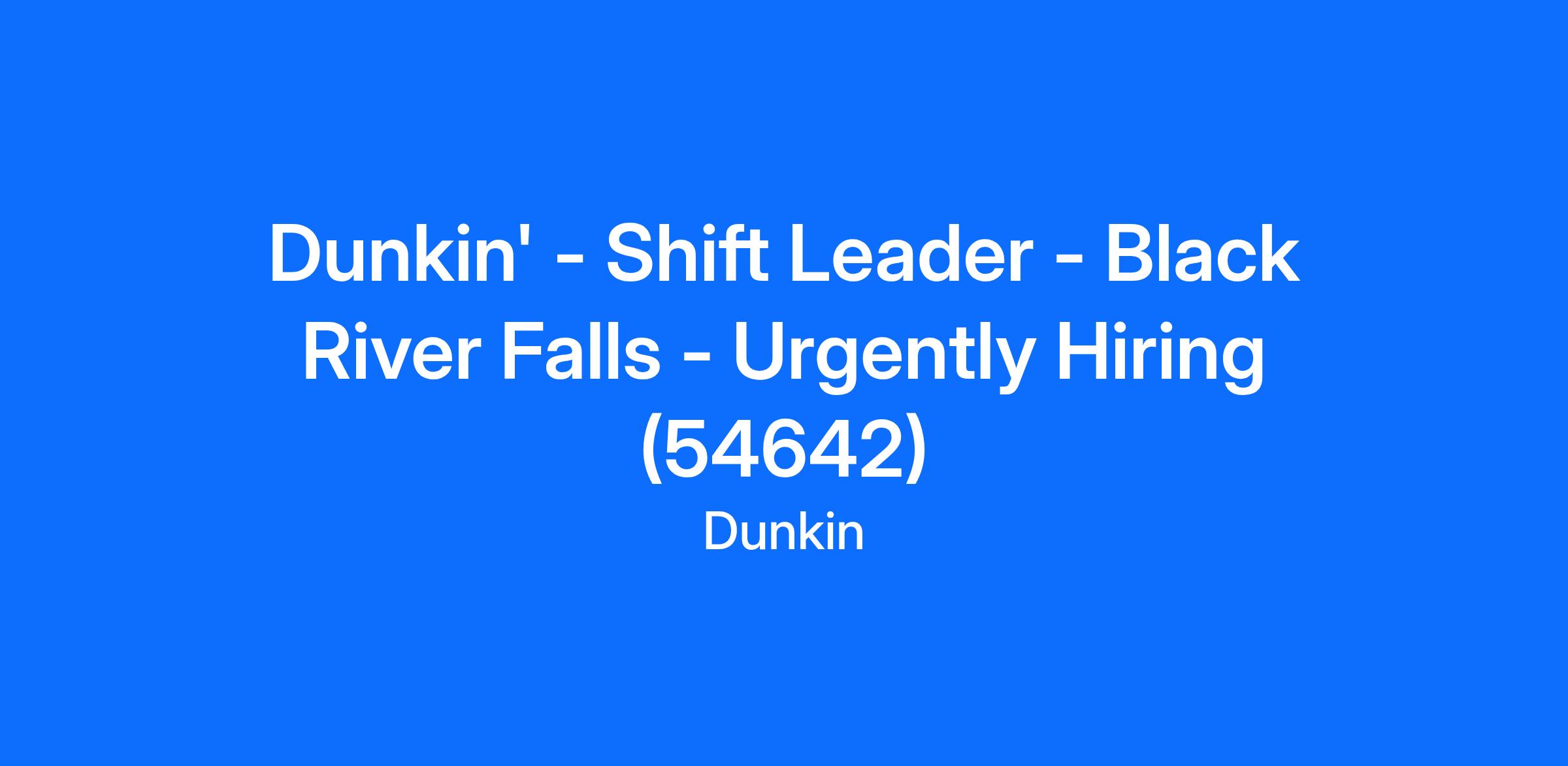 Dunkin' - Shift Leader - Black River Falls - Urgently Hiring (54642)