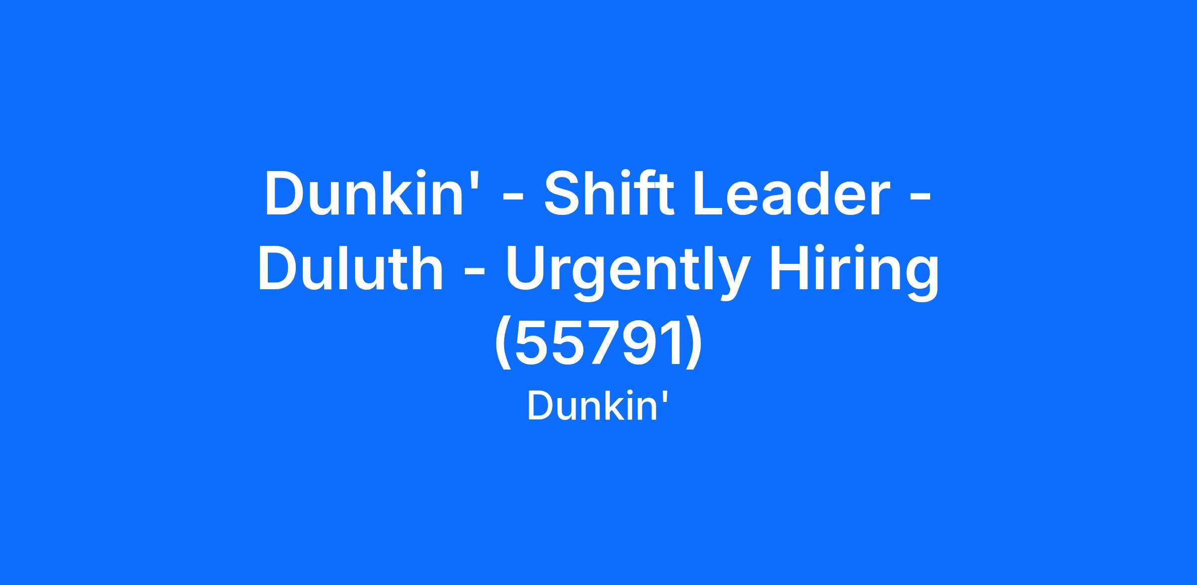 Dunkin' - Shift Leader - Duluth - Urgently Hiring (55791)
