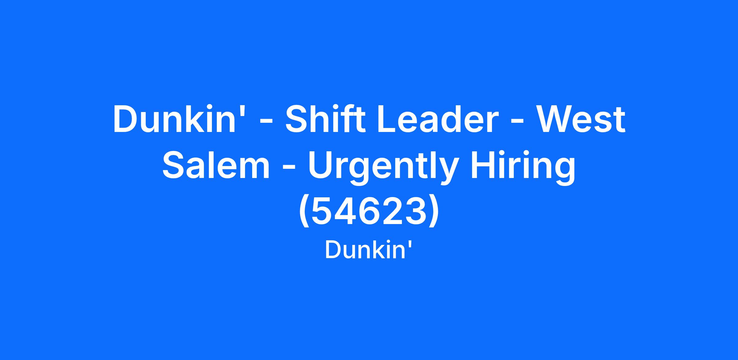 Dunkin' - Shift Leader - West Salem - Urgently Hiring (54623)