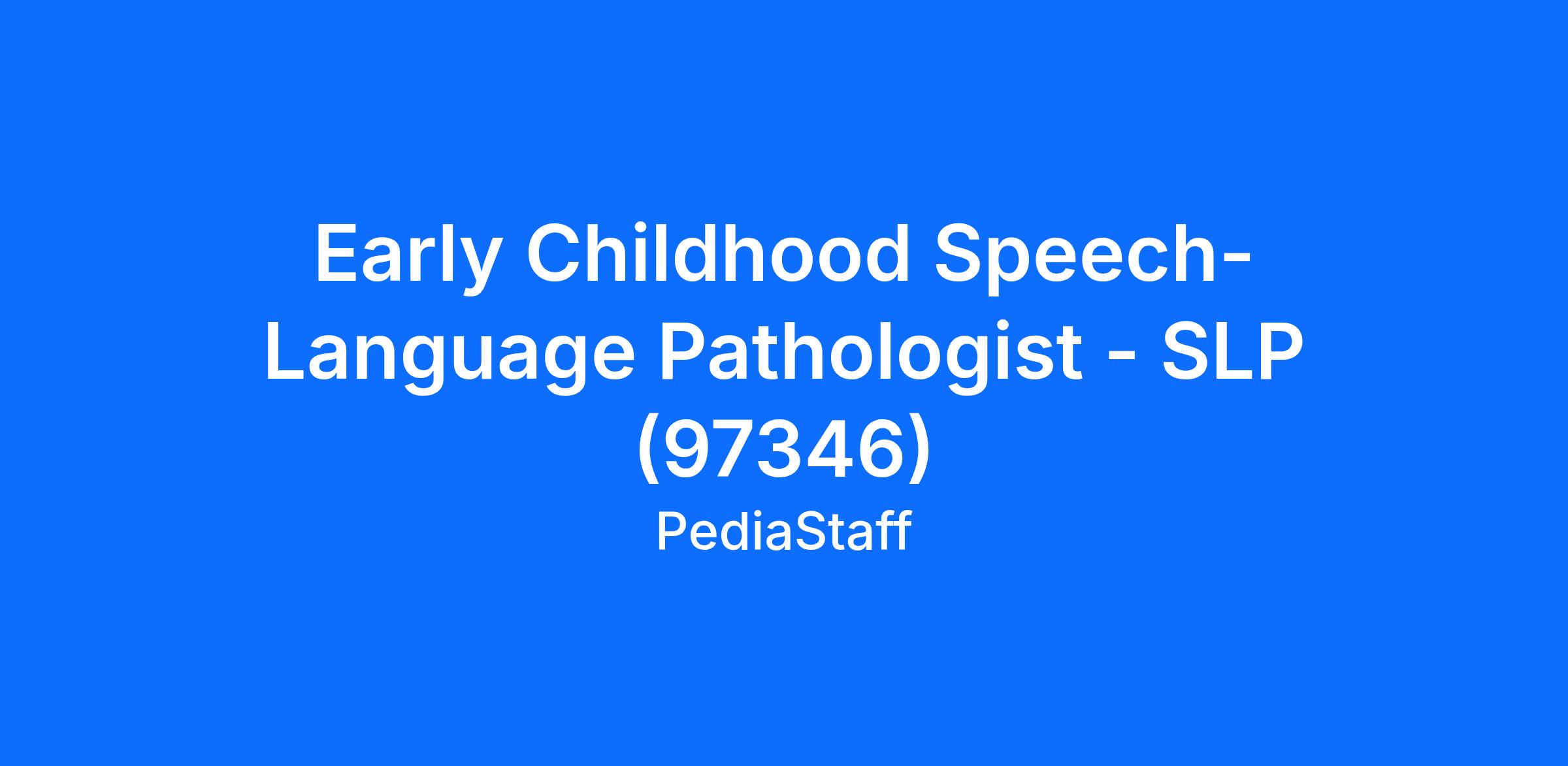 Early Childhood Speech-Language Pathologist - SLP (97346)
