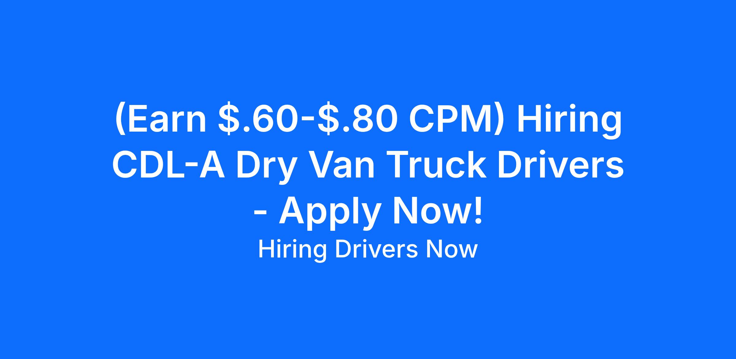 Now Hiring CDL-A Dry Van Truck Drivers - $.60 - $.80+ CPM!