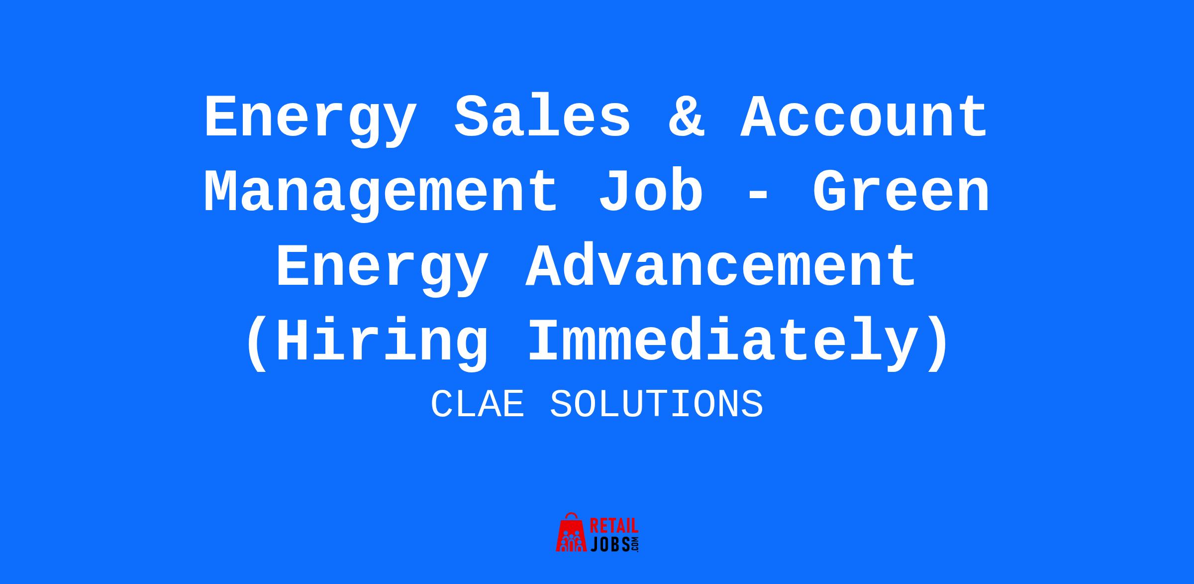 Energy Sales & Account Management Job - Green Energy Advancement (Hiring Immediately)