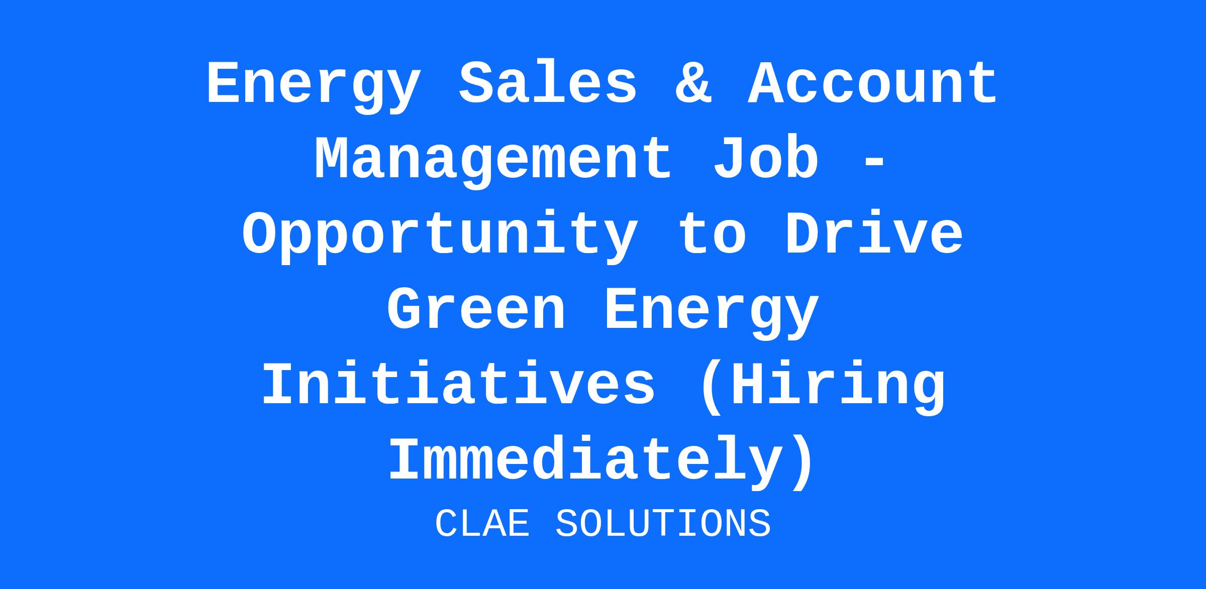 Energy Sales & Account Management Job - Opportunity to Drive Green Energy Initiatives (Hiring Immediately)
