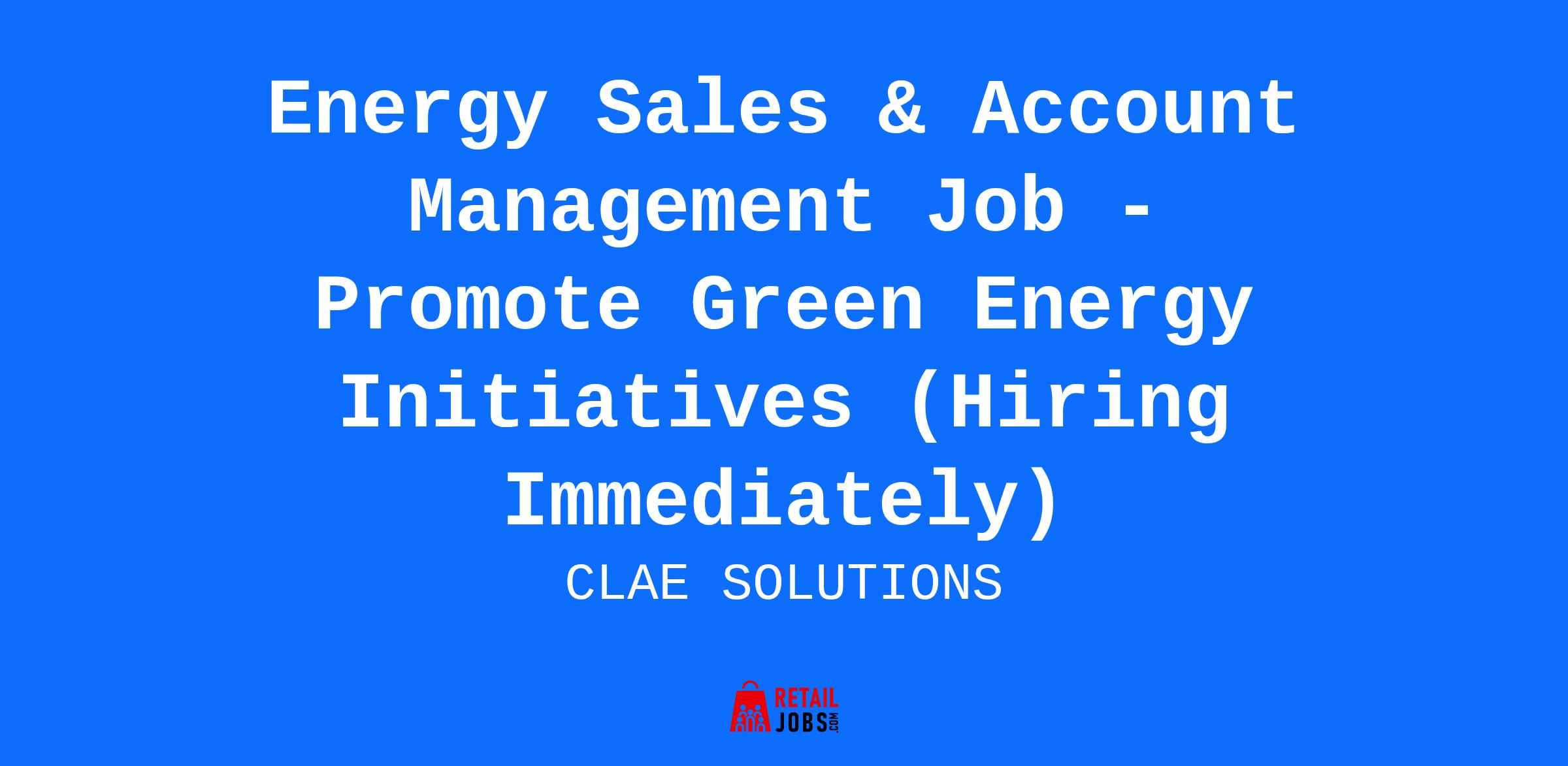 Energy Sales & Account Management Job - Promote Green Energy Initiatives (Hiring Immediately)