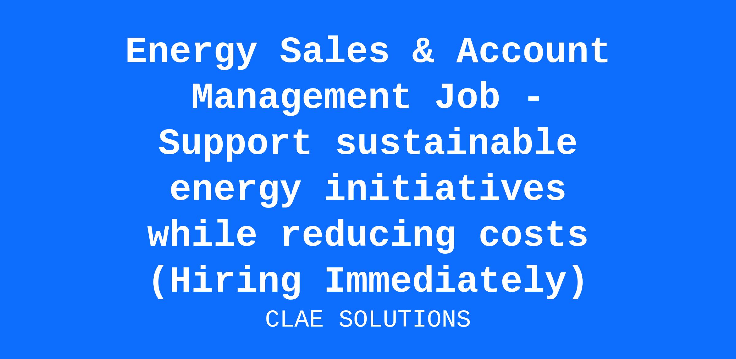 Energy Sales & Account Management Job - Support sustainable energy initiatives while reducing costs (Hiring Immediately)