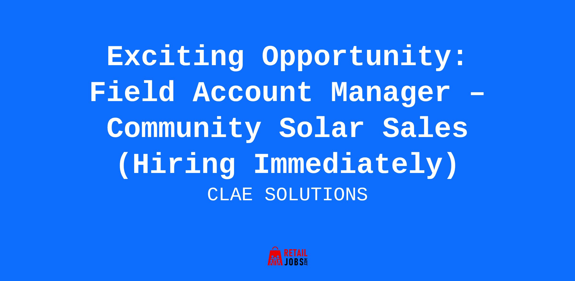 Exciting Opportunity: Field Account Manager – Community Solar Sales (Hiring Immediately)