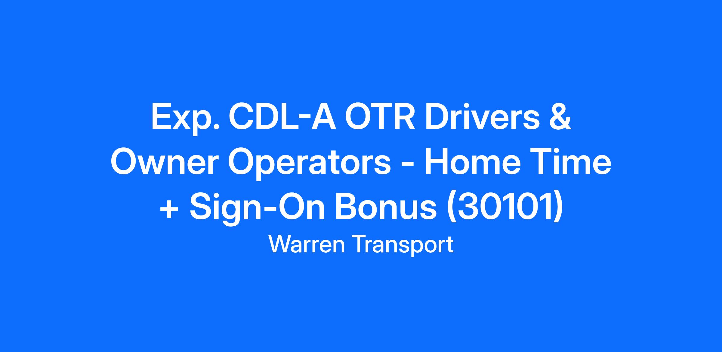 Warren Transport is Now Seeking Experienced CDL-A OTR Drivers & Owner Operators!