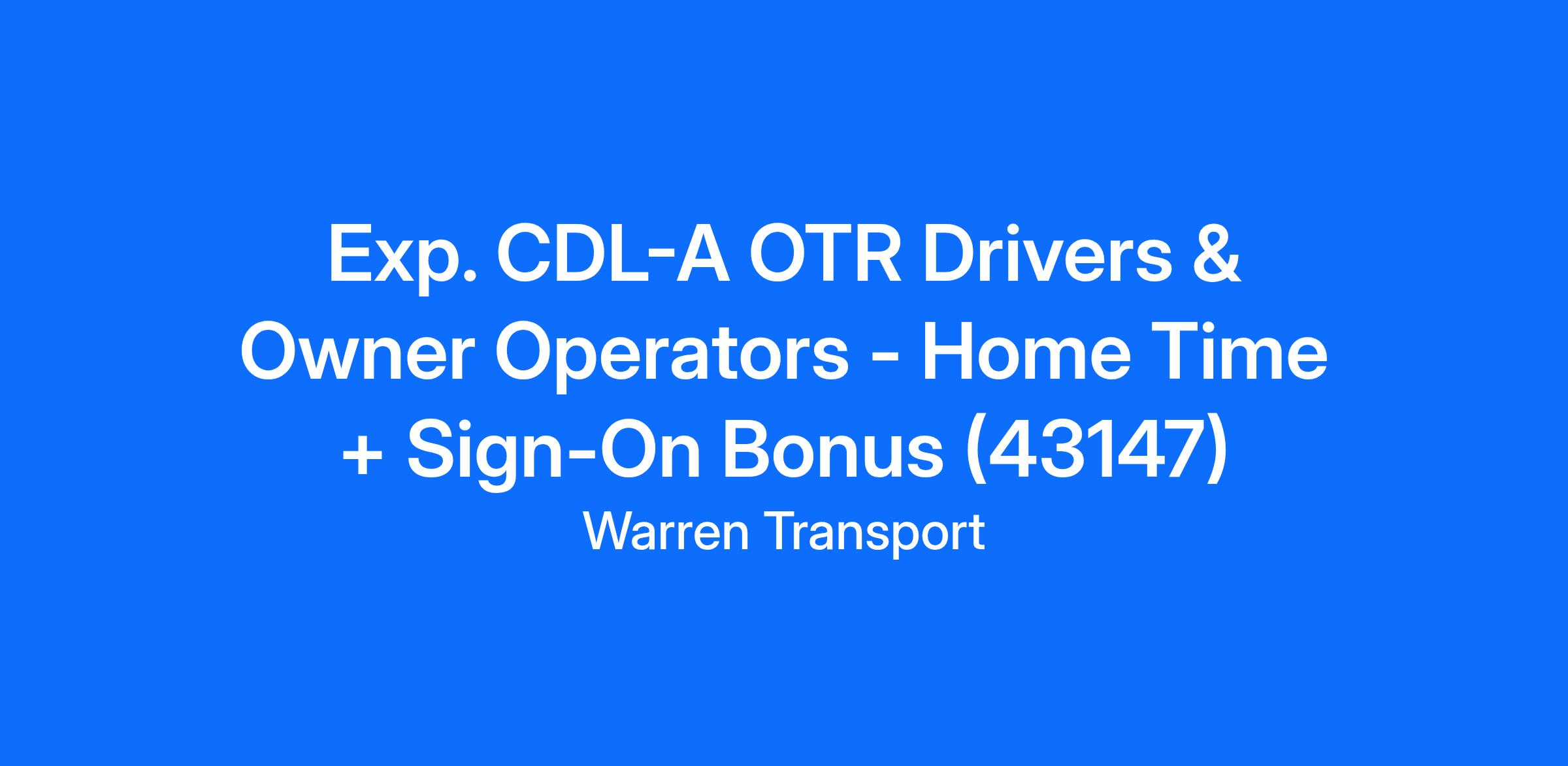 Exp. CDL-A OTR Drivers & Owner Operators - Home Time + Sign-On Bonus (43147)