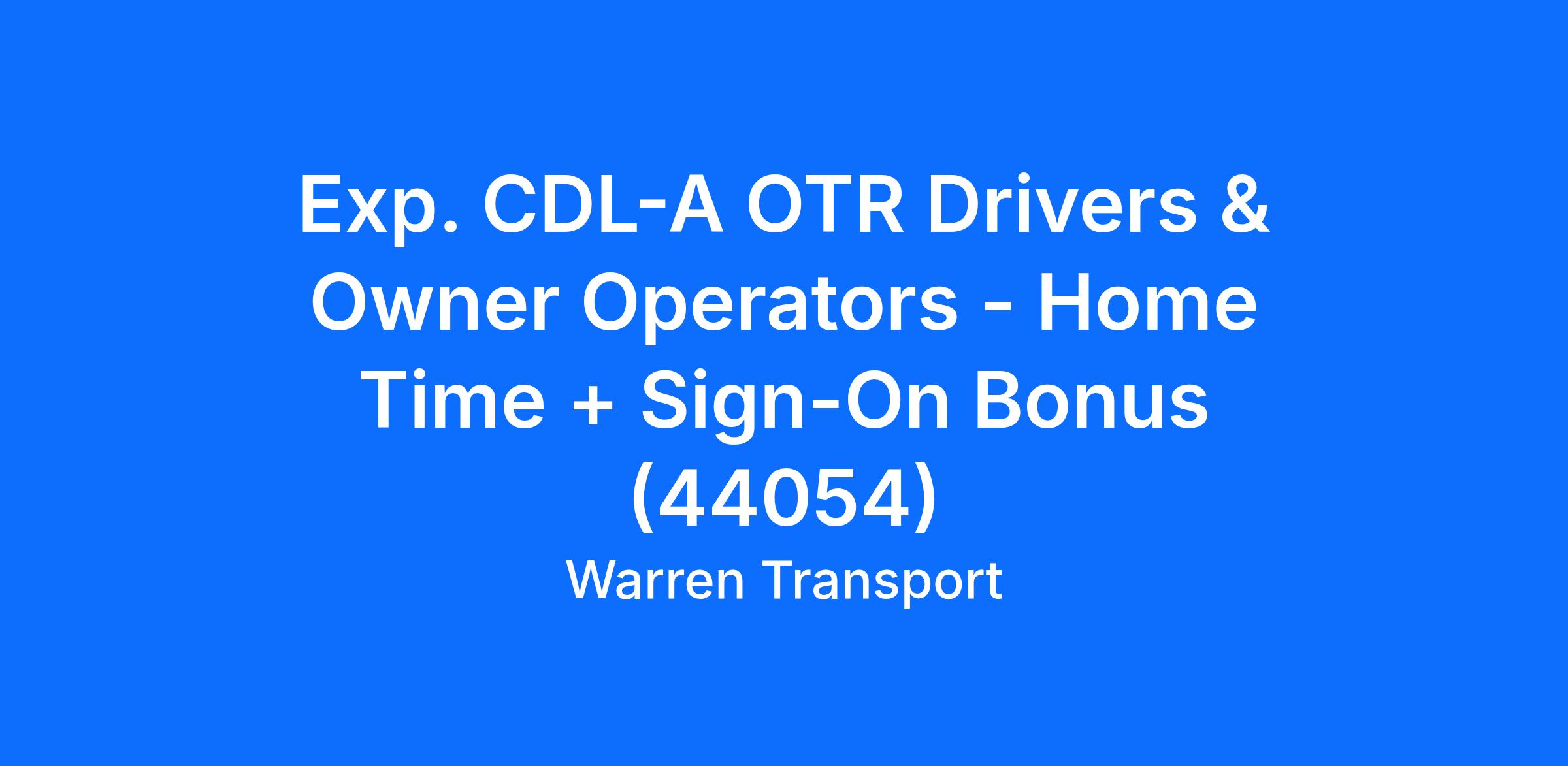 Exp. CDL-A OTR Drivers & Owner Operators - Home Time + Sign-On Bonus (44054)