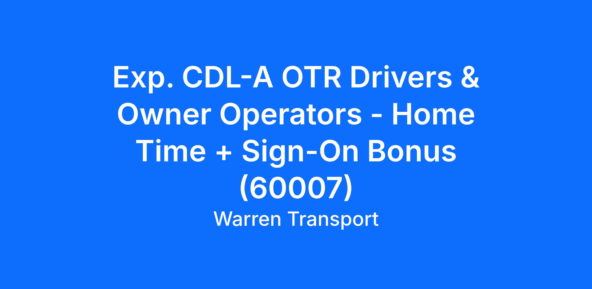 Exp. CDL-A OTR Drivers & Owner Operators - Home Time + Sign-On Bonus (60007)