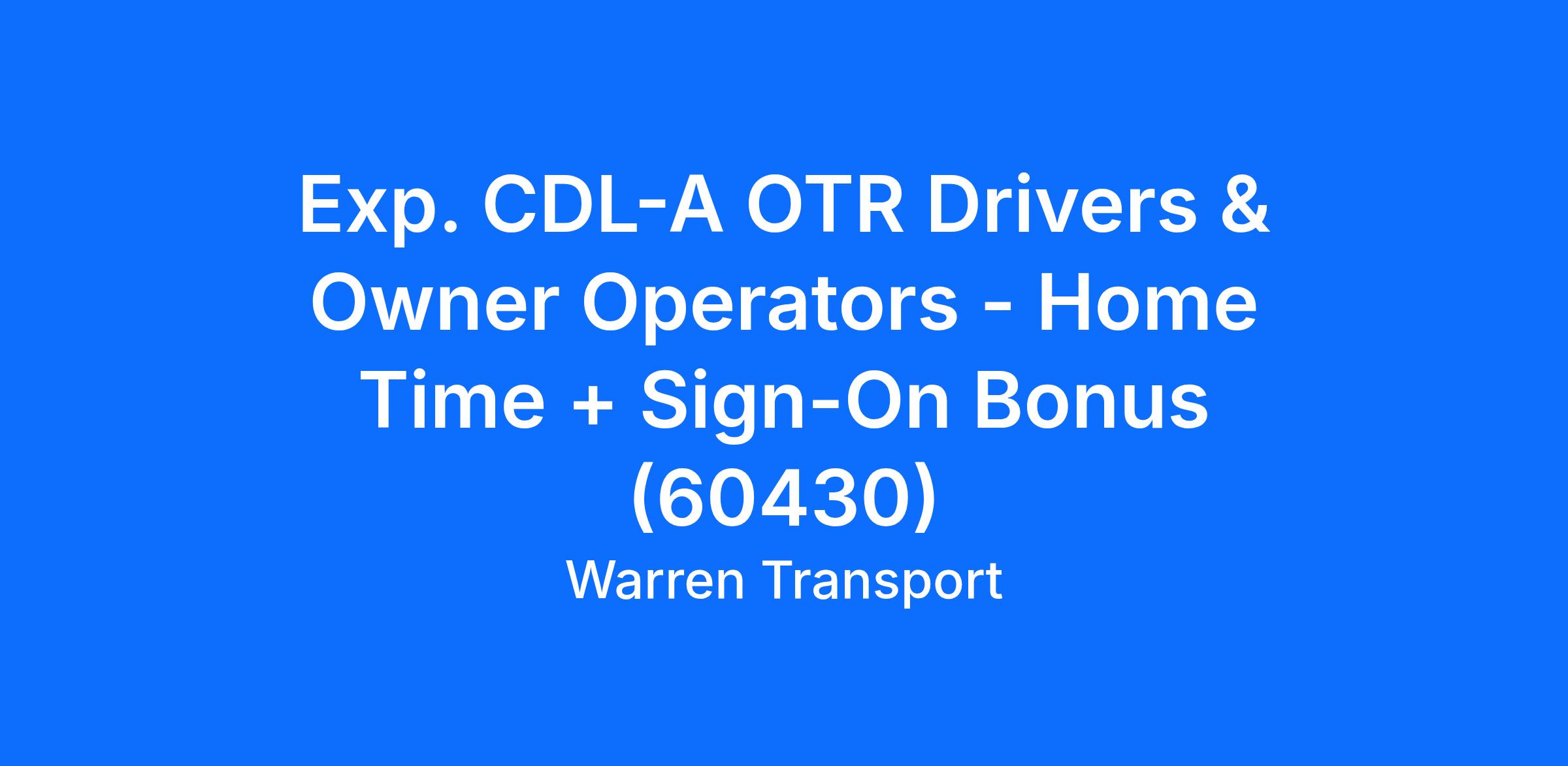 Exp. CDL-A OTR Drivers & Owner Operators - Home Time + Sign-On Bonus (60430)