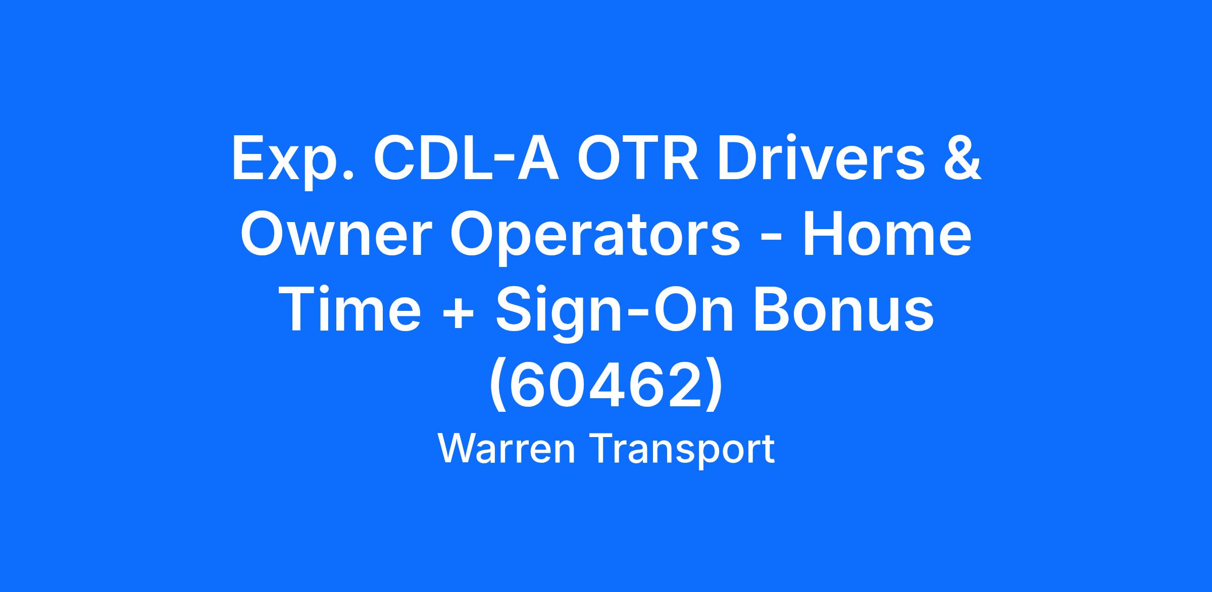 Exp. CDL-A OTR Drivers & Owner Operators - Home Time + Sign-On Bonus (60462)