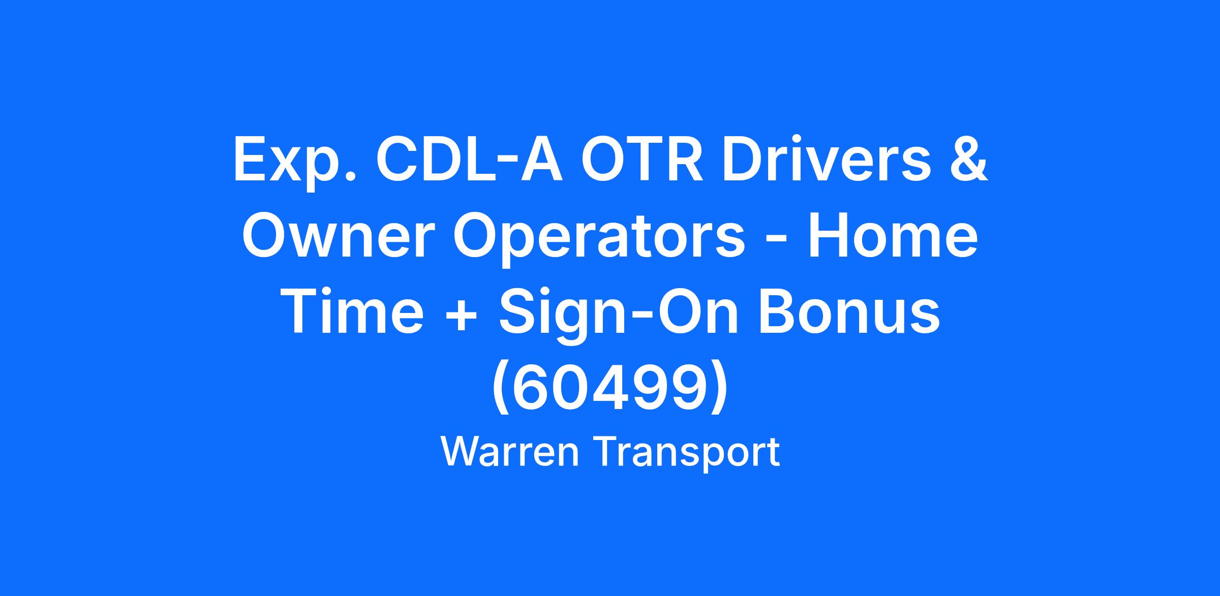 Exp. CDL-A OTR Drivers & Owner Operators - Home Time + Sign-On Bonus (60499)