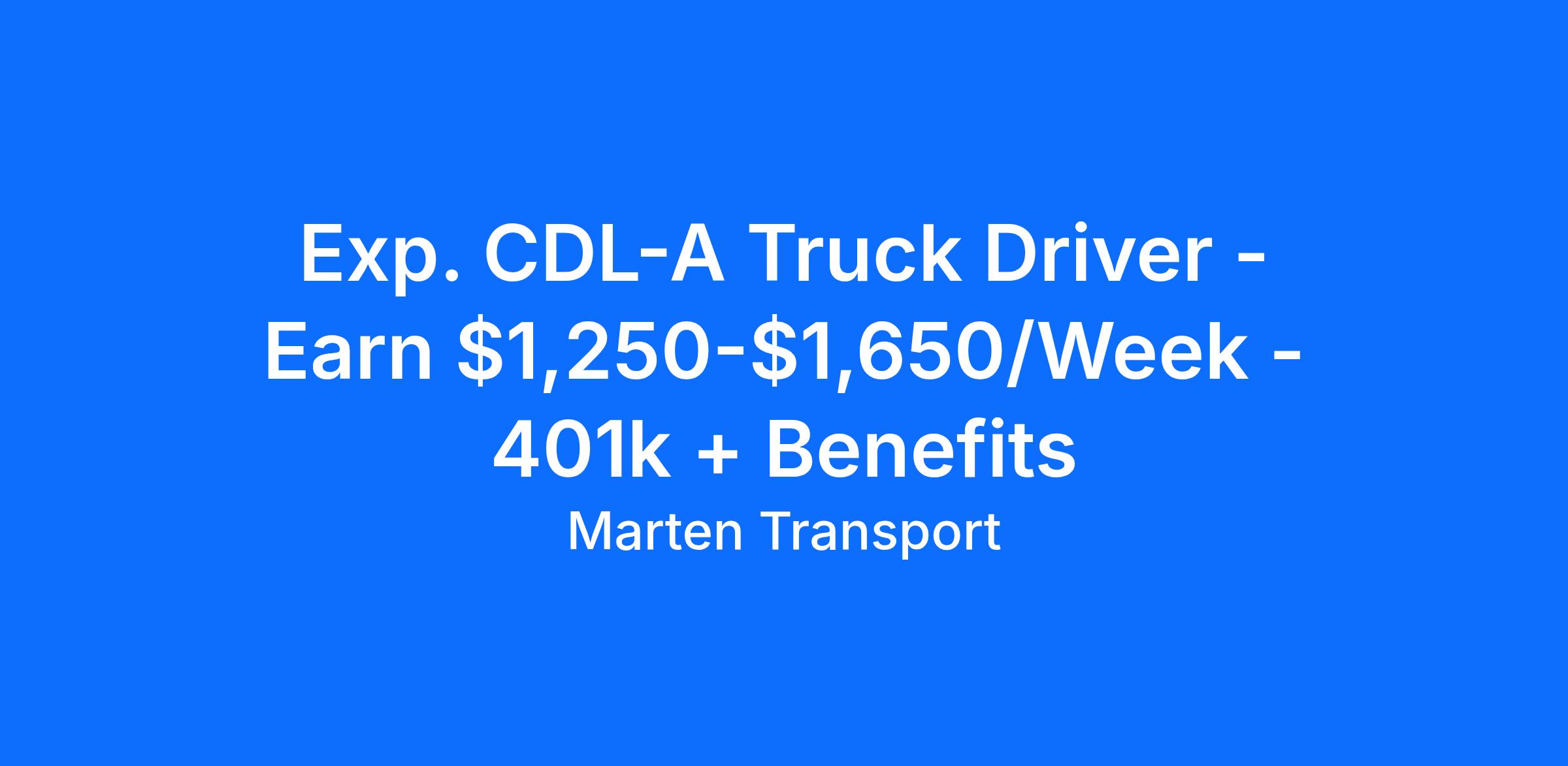 - Minimum 6 months of recent qualified CDL-A driving experience - Marten does not provide CDL training