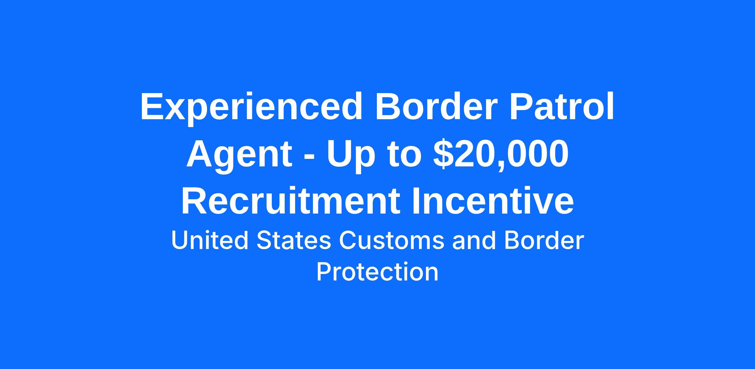 Experienced Border Patrol Agent - Up to $20,000 Recruitment Incentive