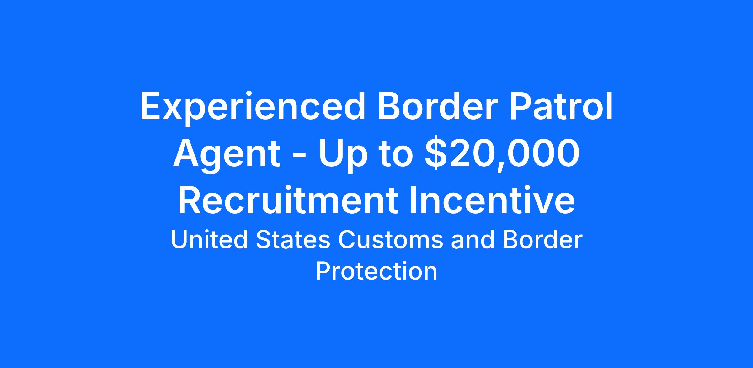 Experienced Border Patrol Agent - Up to $20,000 Recruitment Incentive