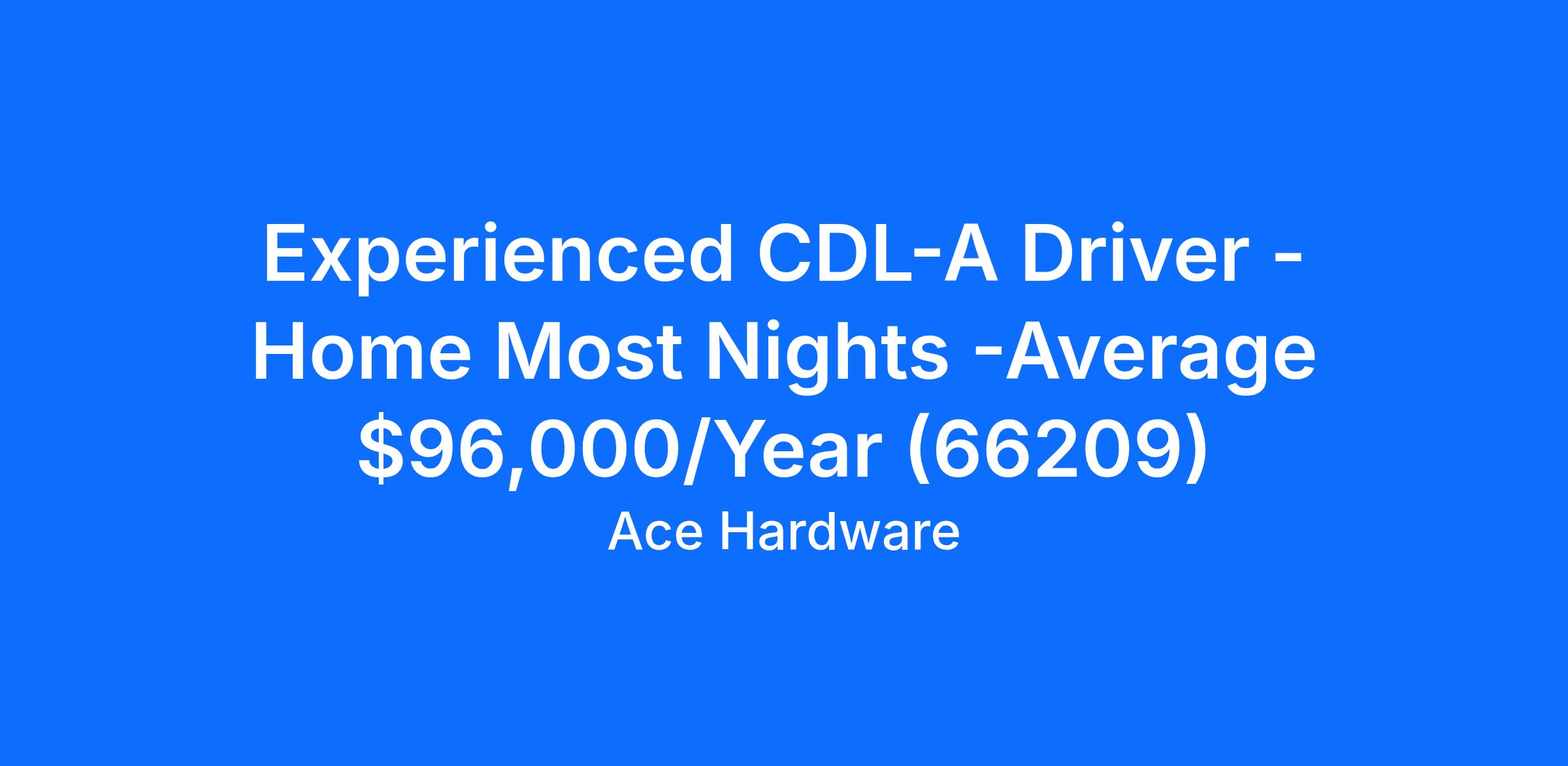 Experienced CDL-A Driver - Home Most Nights -Average $96,000/Year (66209)