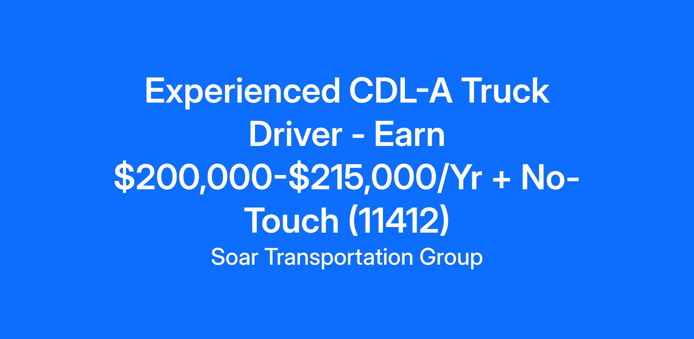 Experienced CDL-A Truck Driver - Earn $200,000-$215,000/Yr + No-Touch (11412)
