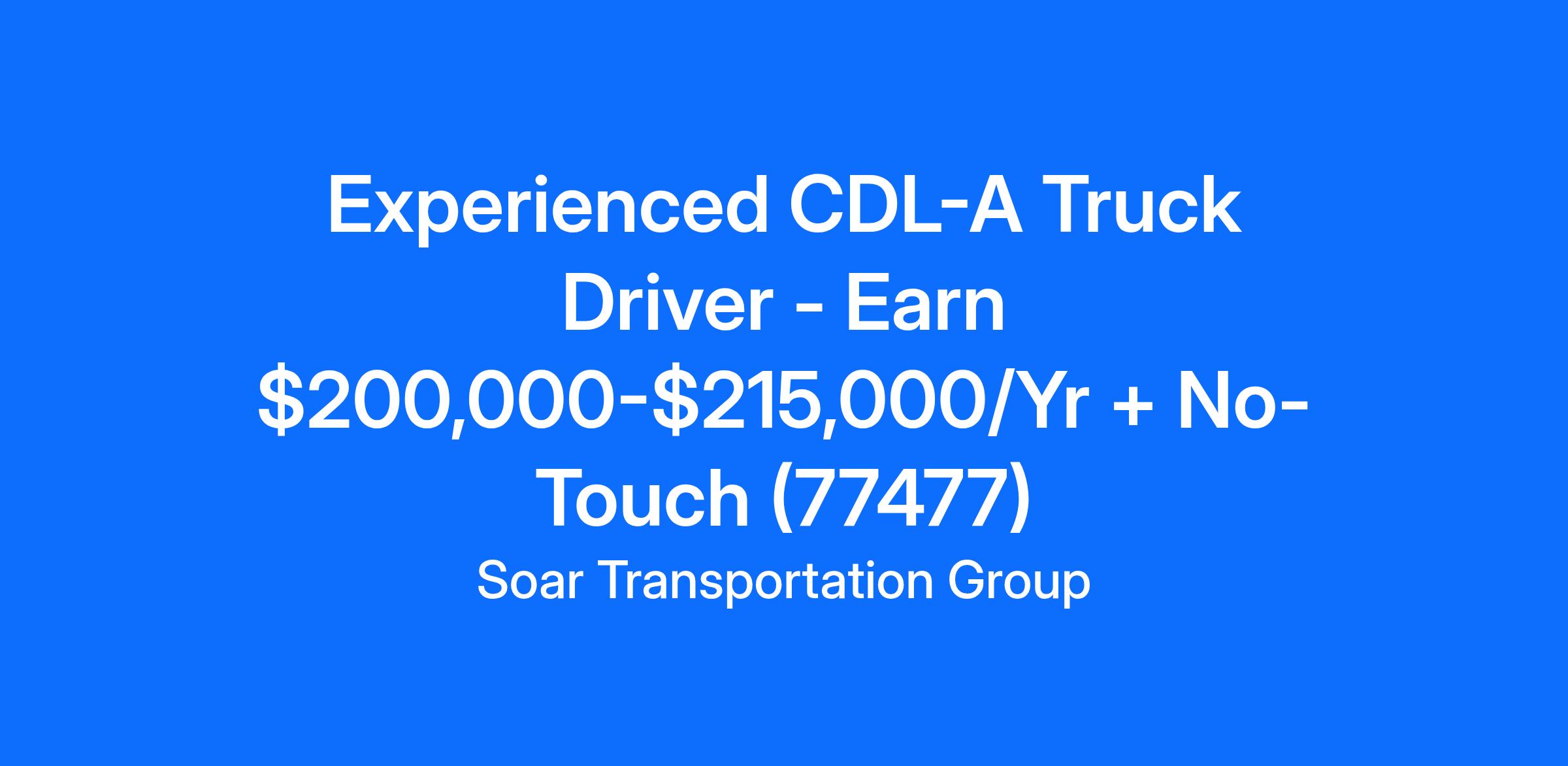 Experienced CDL-A Truck Driver - Earn $200,000-$215,000/Yr + No-Touch (77477)