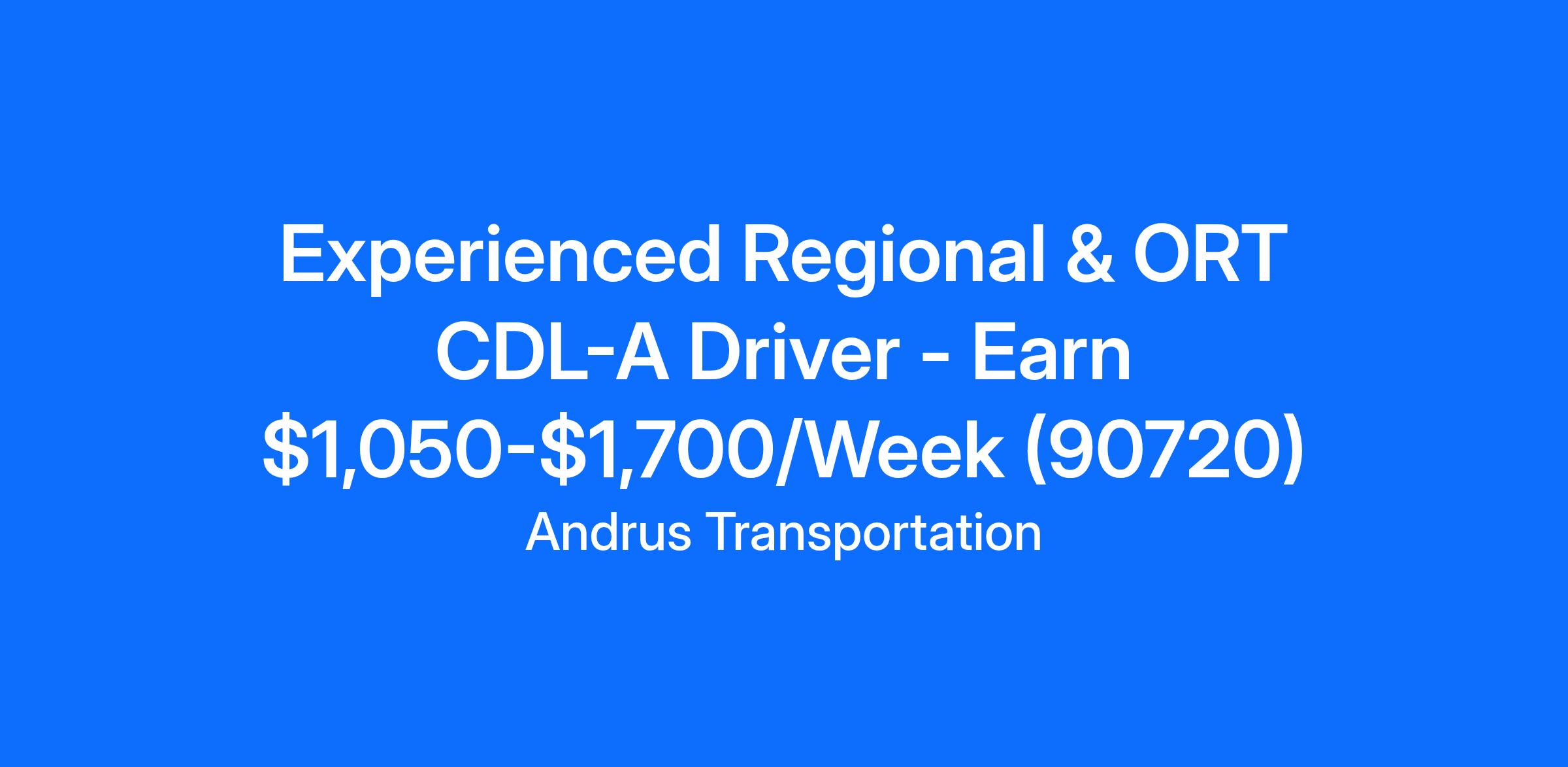 Experienced Regional & ORT CDL-A Driver - Earn $1,050-$1,700/Week (90720)