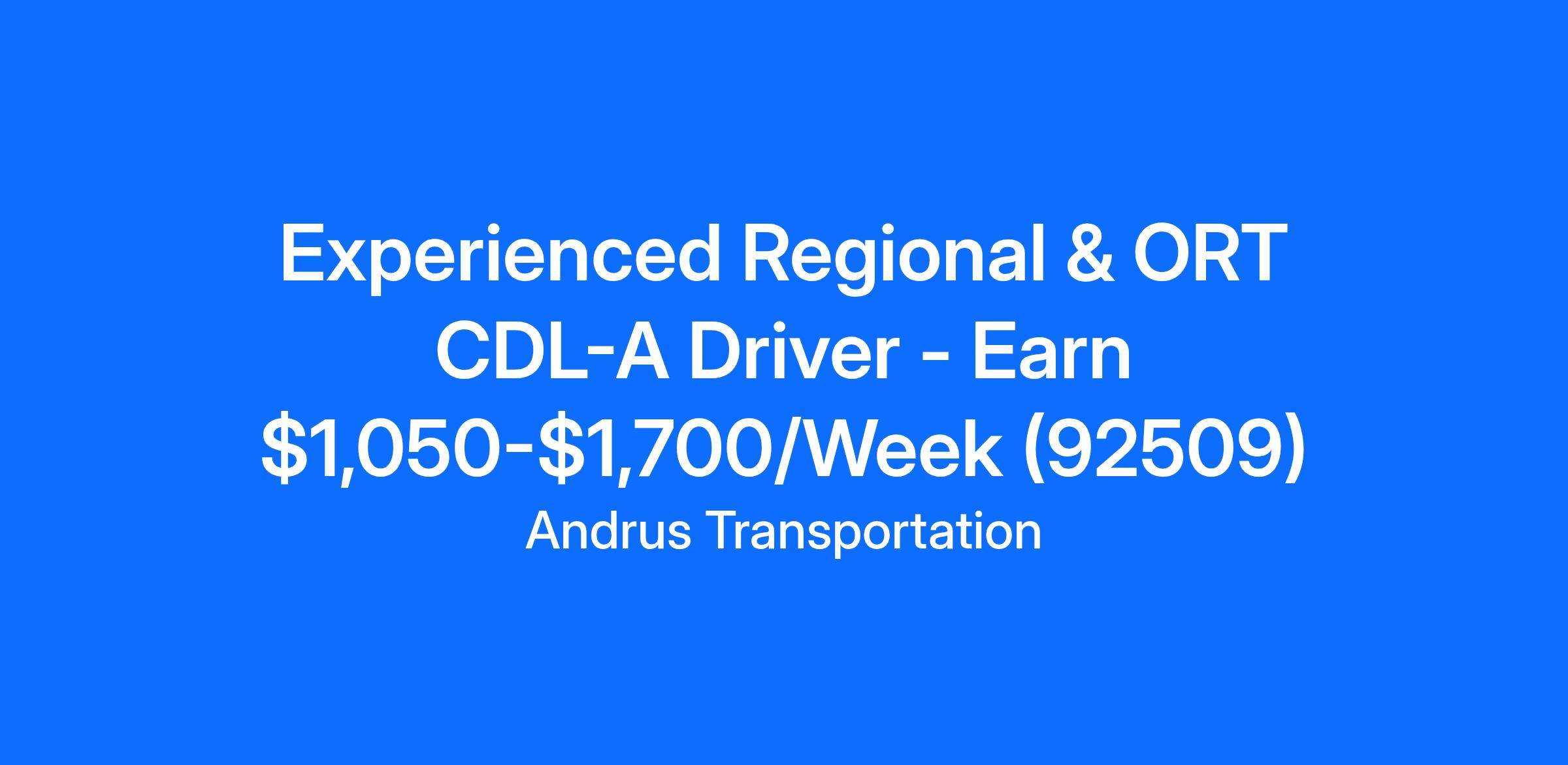 Experienced Regional & ORT CDL-A Driver - Earn $1,050-$1,700/Week (92509)