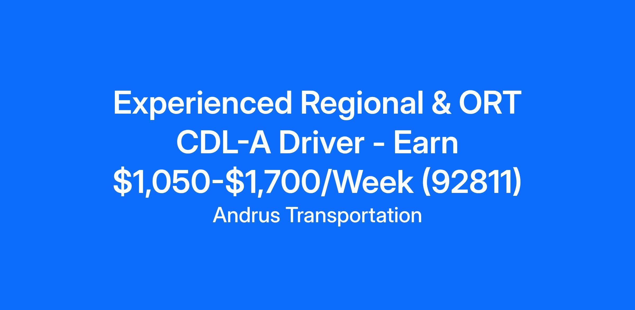 Experienced Regional & ORT CDL-A Driver - Earn $1,050-$1,700/Week (92811)