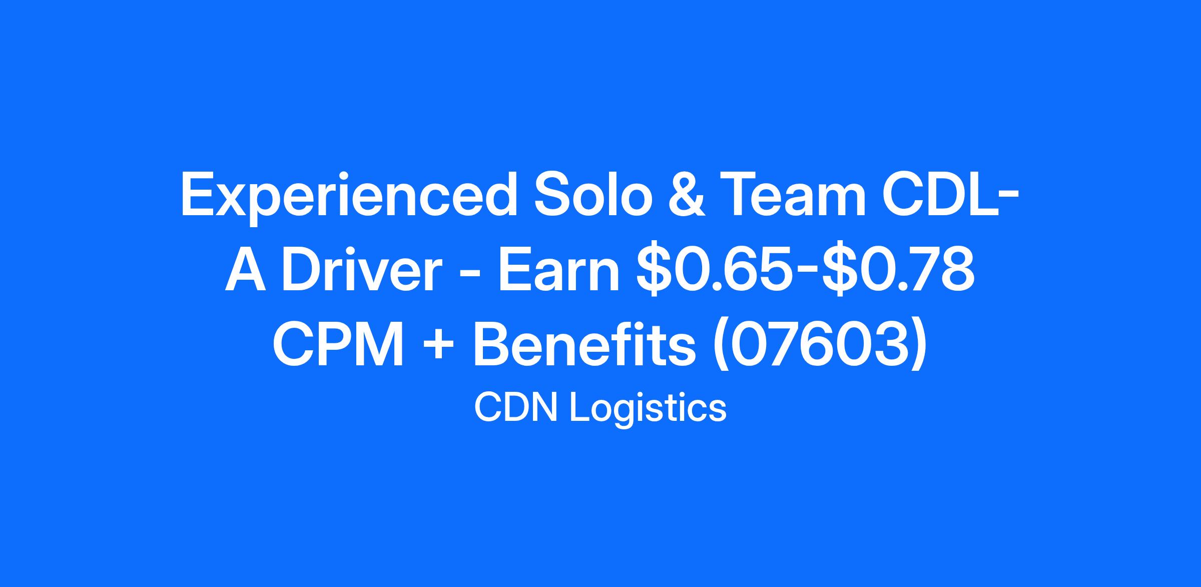 Experienced Solo & Team CDL-A Driver - Earn $0.65-$0.78 CPM + Benefits (07603)