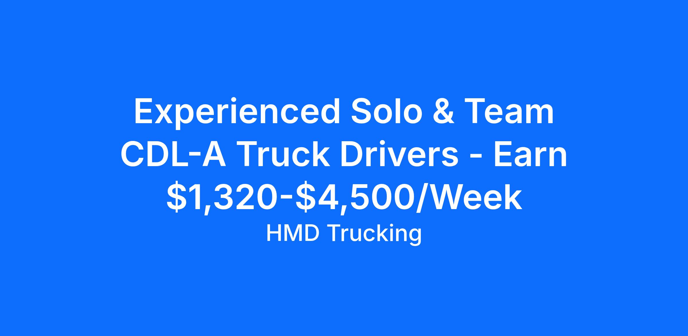 HMD Trucking is hiring experienced CDL Class A drivers for OTR DryVan positions. We offer steady freight, strong pay, and full support for every mile!