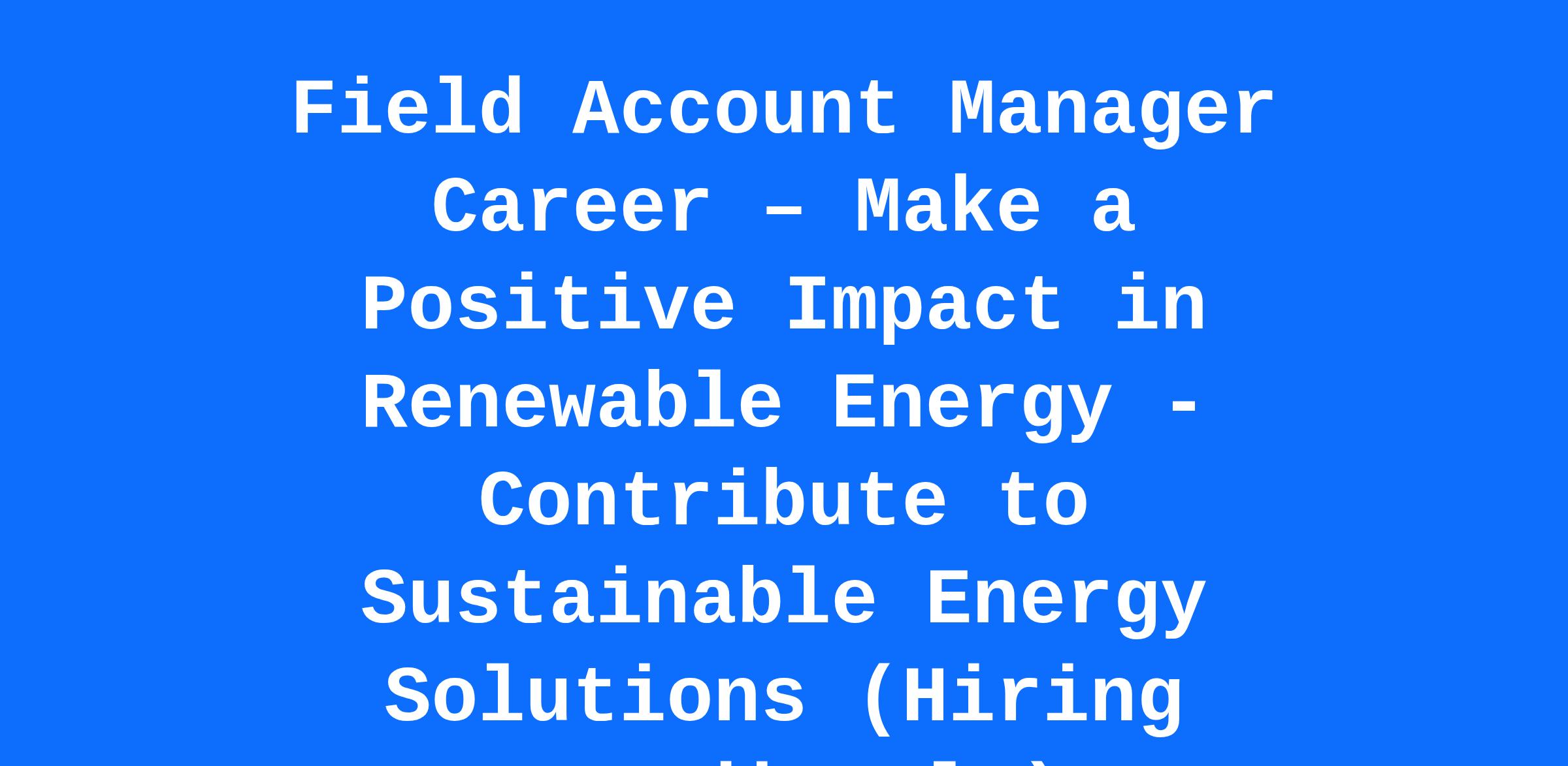 Field Account Manager Career – Make a Positive Impact in Renewable Energy - Contribute to Sustainable Energy Solutions (Hiring Immediately)