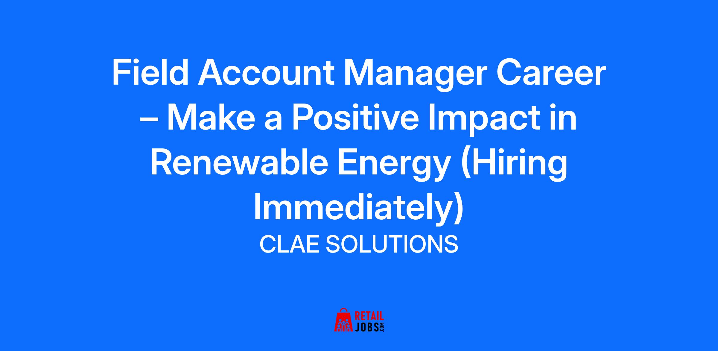 Field Account Manager Career – Make a Positive Impact in Renewable Energy (Hiring Immediately)