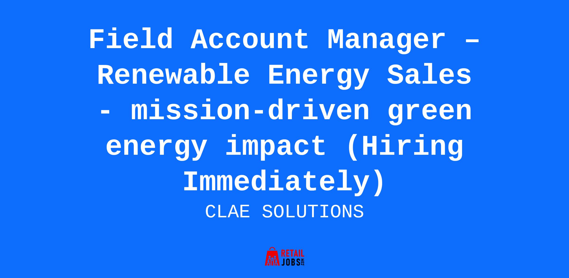 Field Account Manager – Renewable Energy Sales - mission-driven green energy impact (Hiring Immediately)