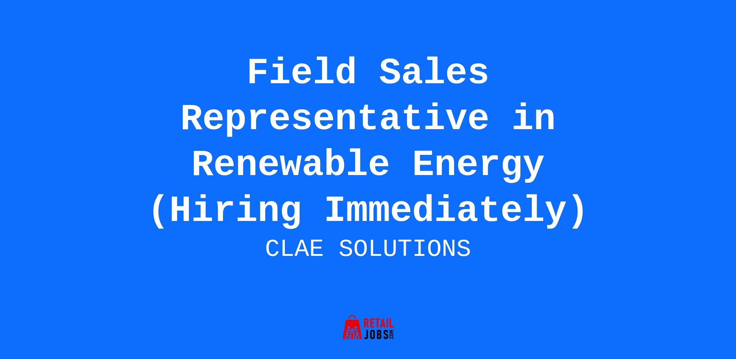 Field Sales Representative in Renewable Energy (Hiring Immediately)