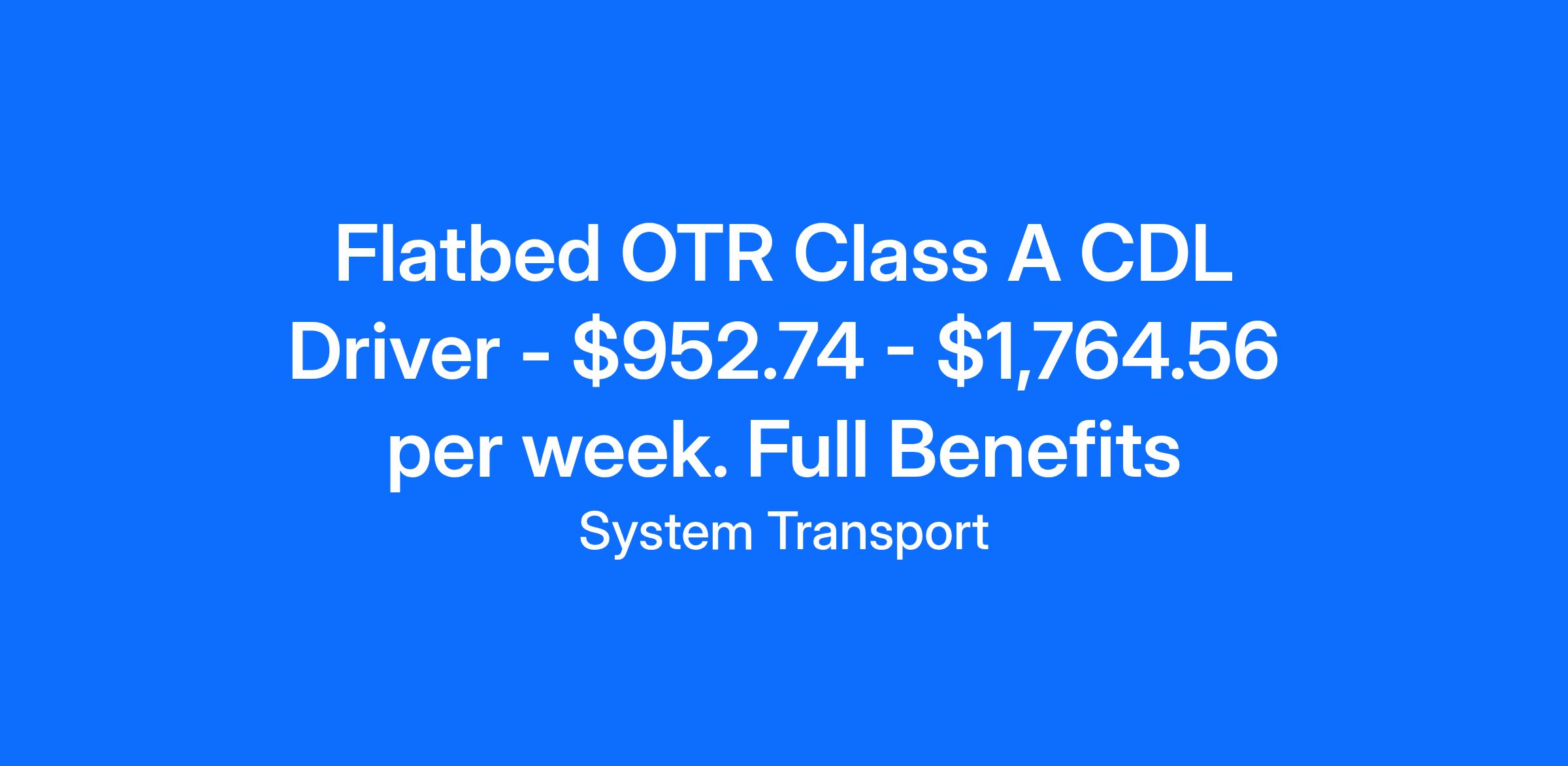 - Required: For all flatbed driver opportunities, the driver must be physically able to lift a 90-pound tarp onto a 5-foot high platform twice. System Transport will test this during orientation, and flatbed drivers tarp about 70% of our loads. (this is required)