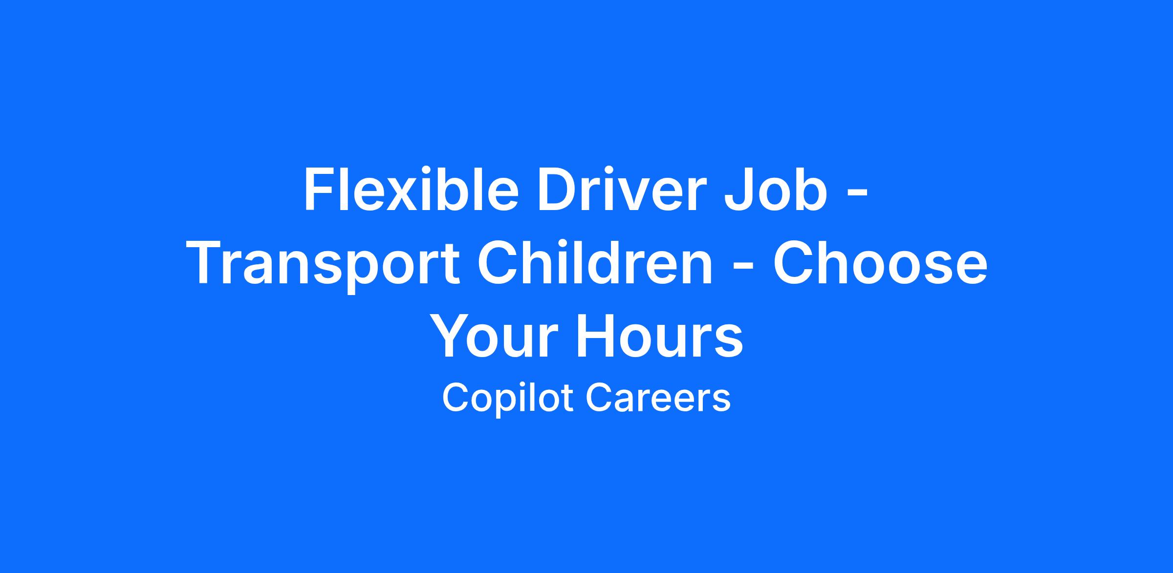 Flexible Driver Job - Transport Children - Choose Your Hours