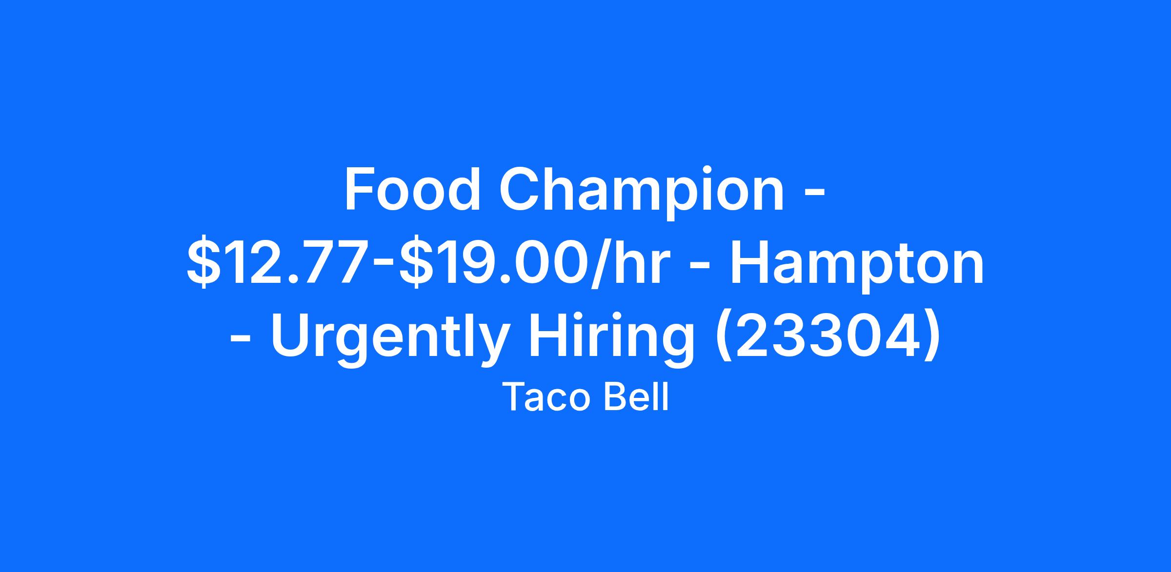 Food Champion - $12.77-$19.00/hr - Hampton - Urgently Hiring (23304)