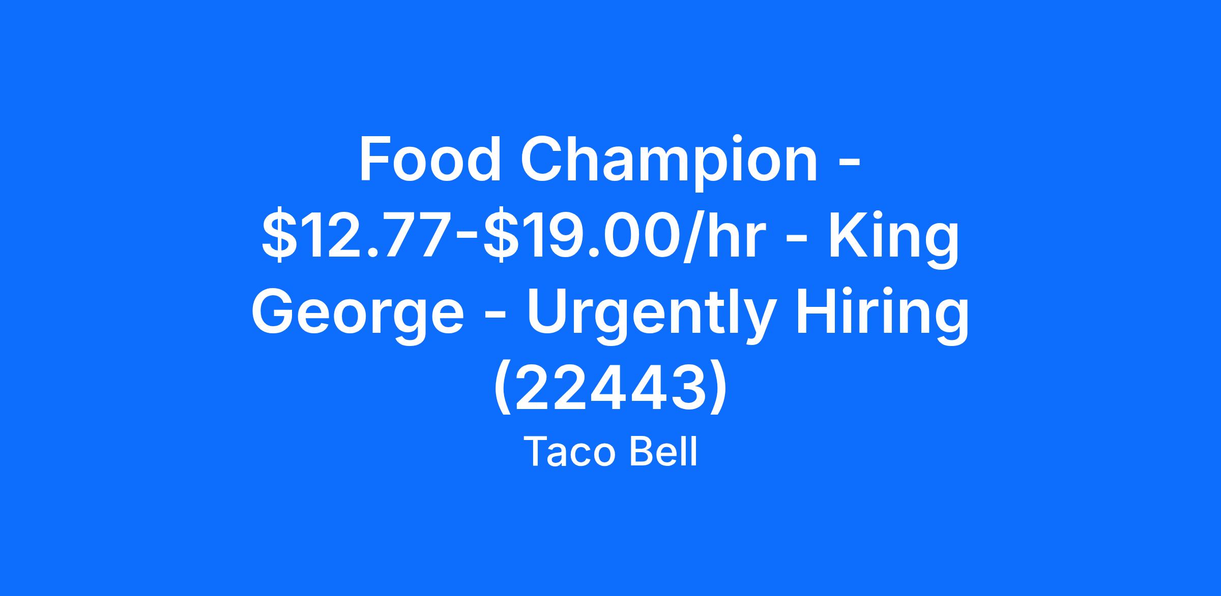 Food Champion - $12.77-$19.00/hr - King George - Urgently Hiring (22443)