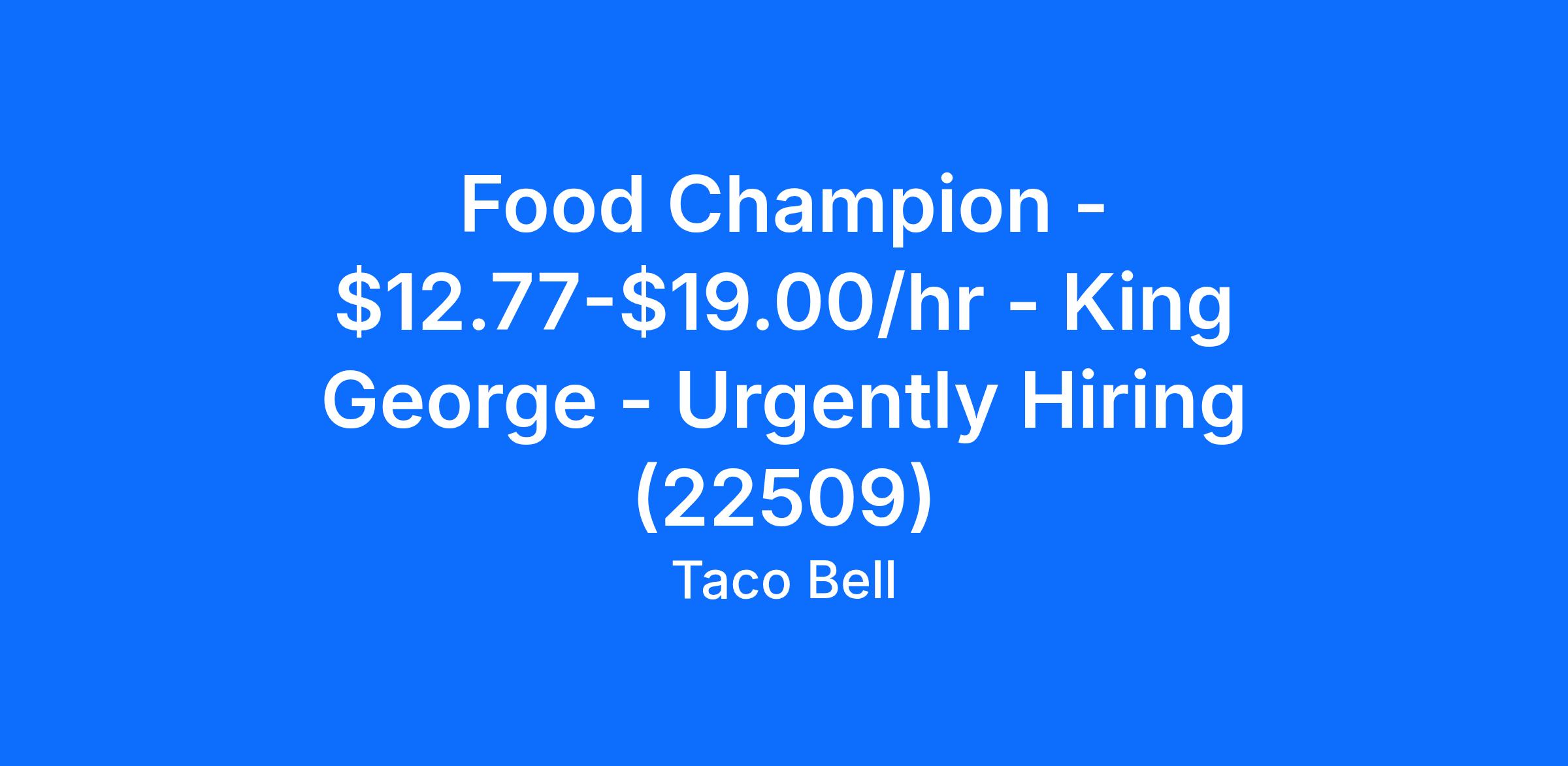 Food Champion - $12.77-$19.00/hr - King George - Urgently Hiring (22509)