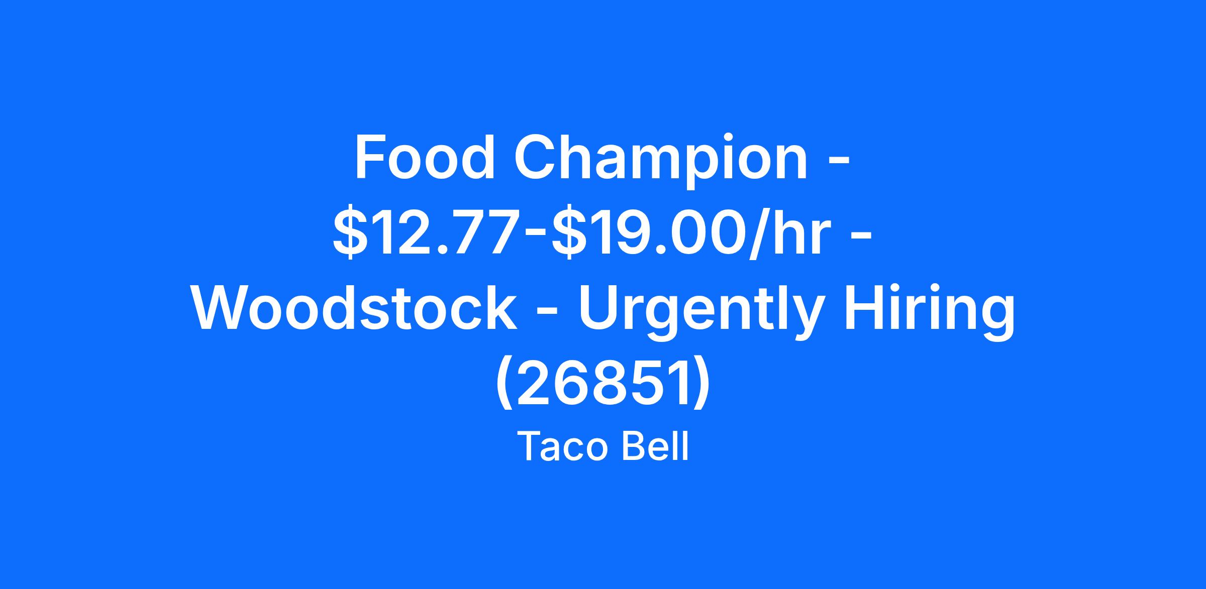 Food Champion - $12.77-$19.00/hr - Woodstock - Urgently Hiring (26851)