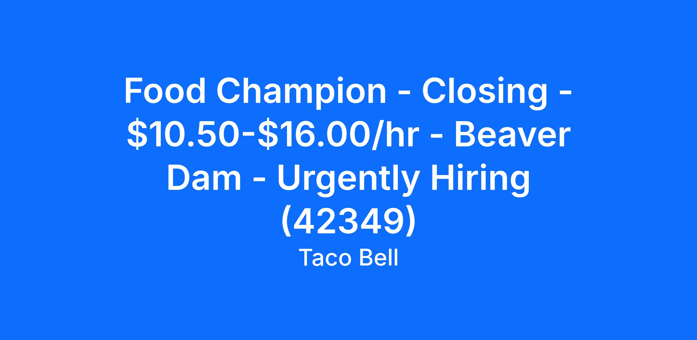 Food Champion - Closing - $10.50-$16.00/hr - Beaver Dam - Urgently Hiring (42349)