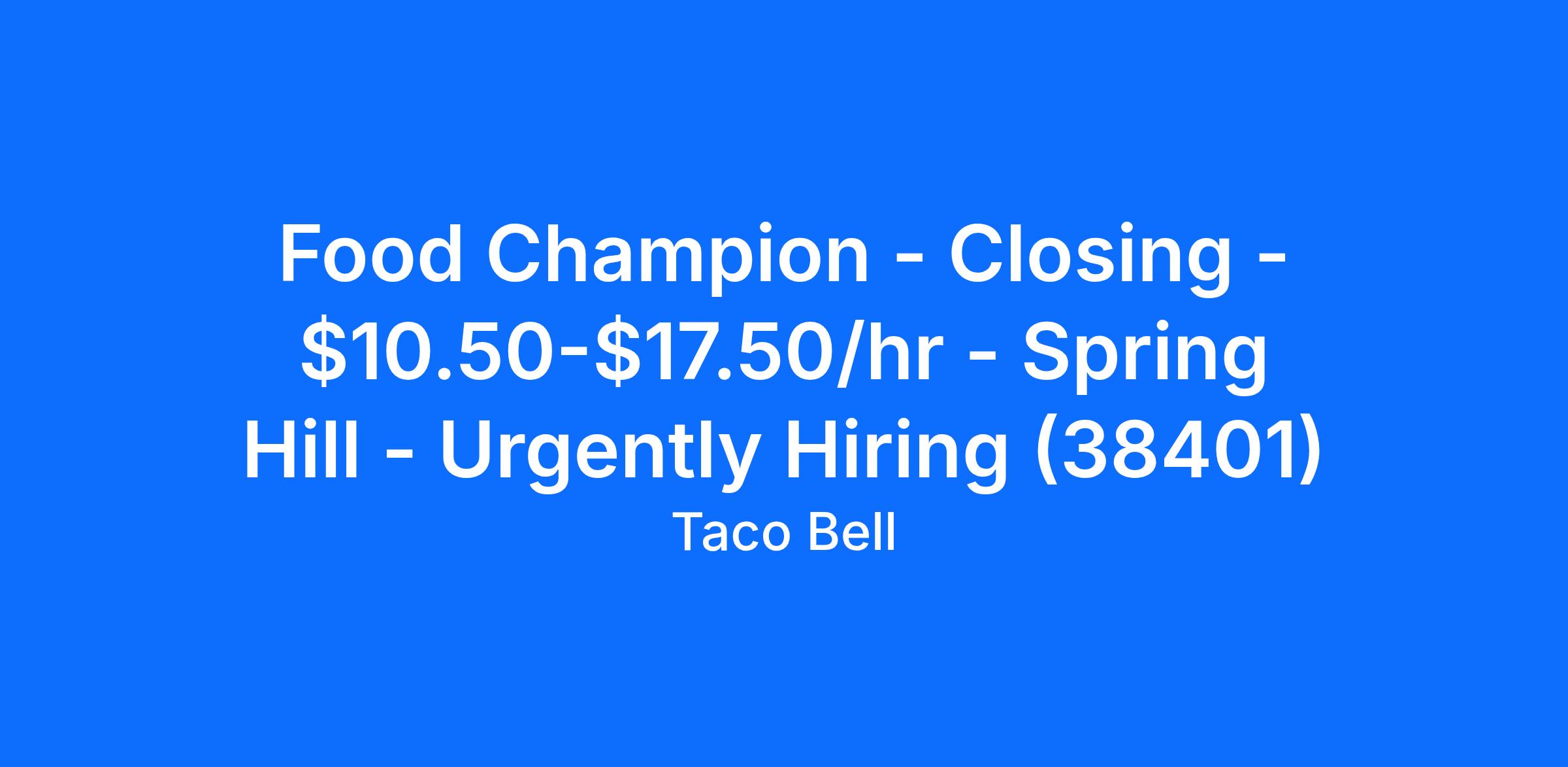 Food Champion - Closing - $10.50-$17.50/hr - Spring Hill - Urgently Hiring (38401)