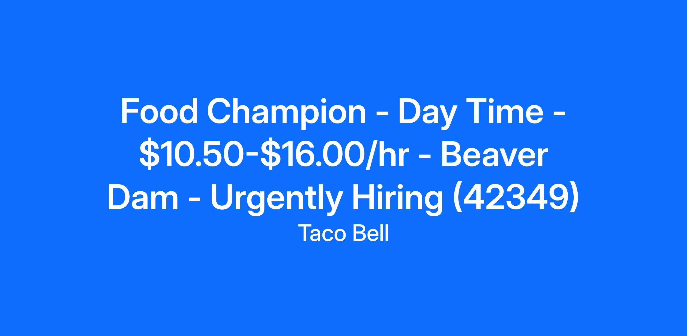 Food Champion - Day Time - $10.50-$16.00/hr - Beaver Dam - Urgently Hiring (42349)