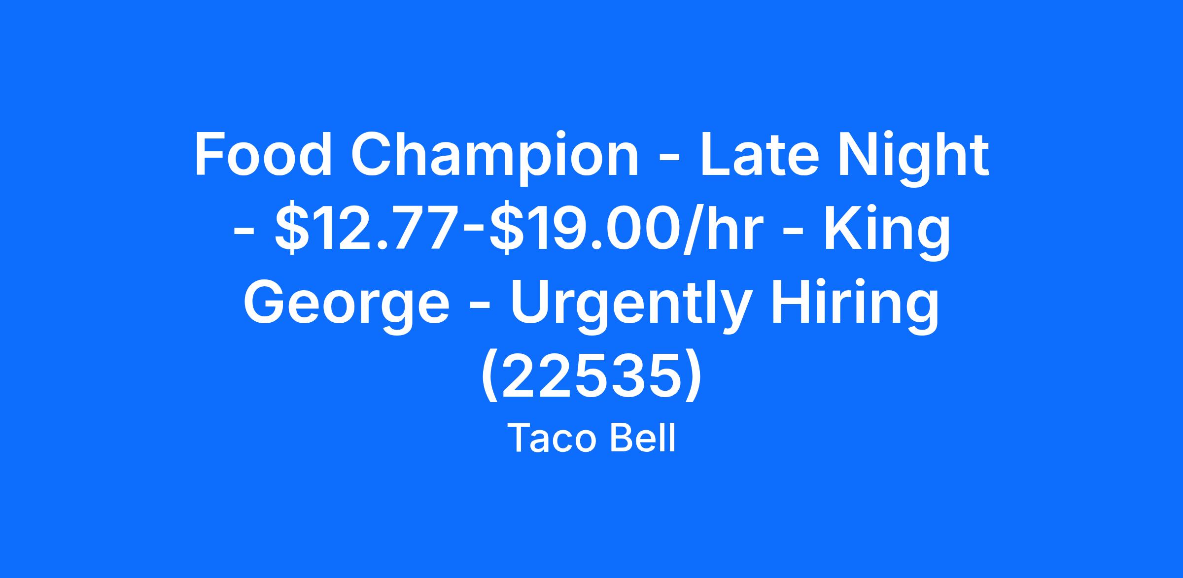 Food Champion - Late Night - $12.77-$19.00/hr - King George - Urgently Hiring (22535)