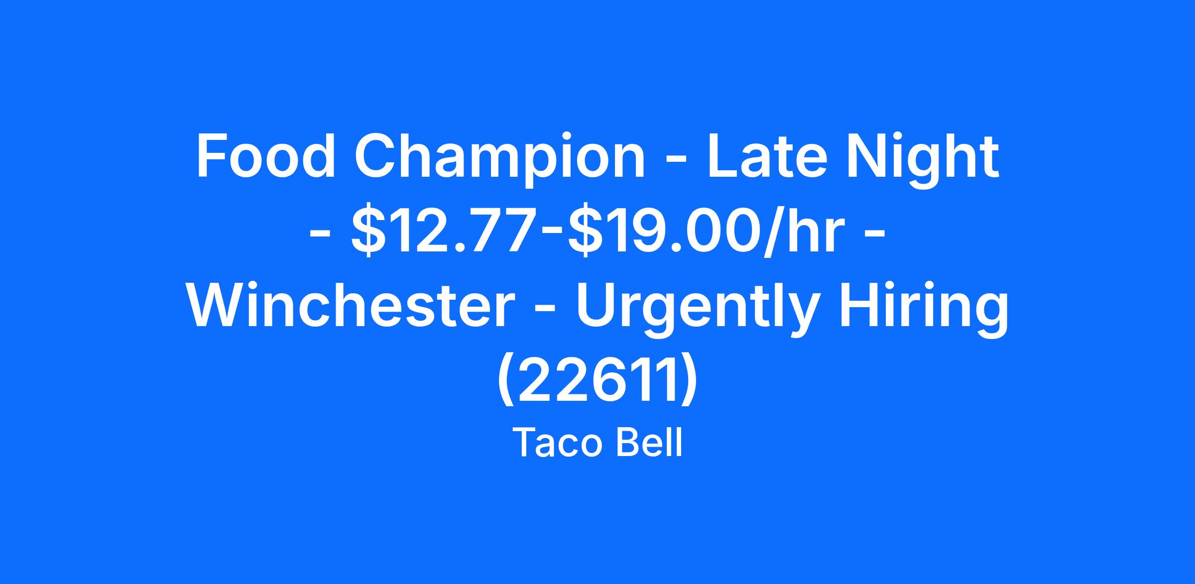 Food Champion - Late Night - $12.77-$19.00/hr - Winchester - Urgently Hiring (22611)